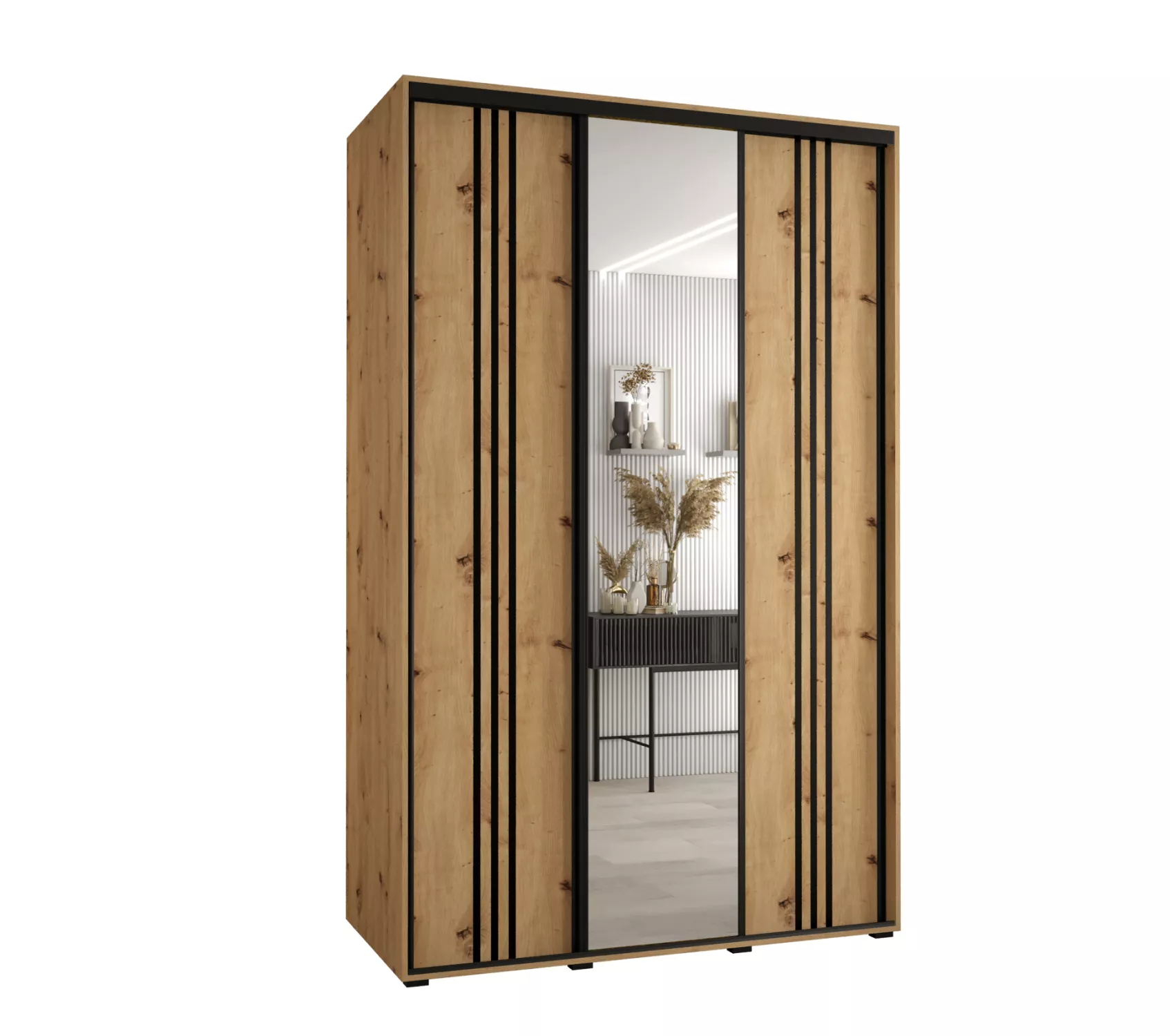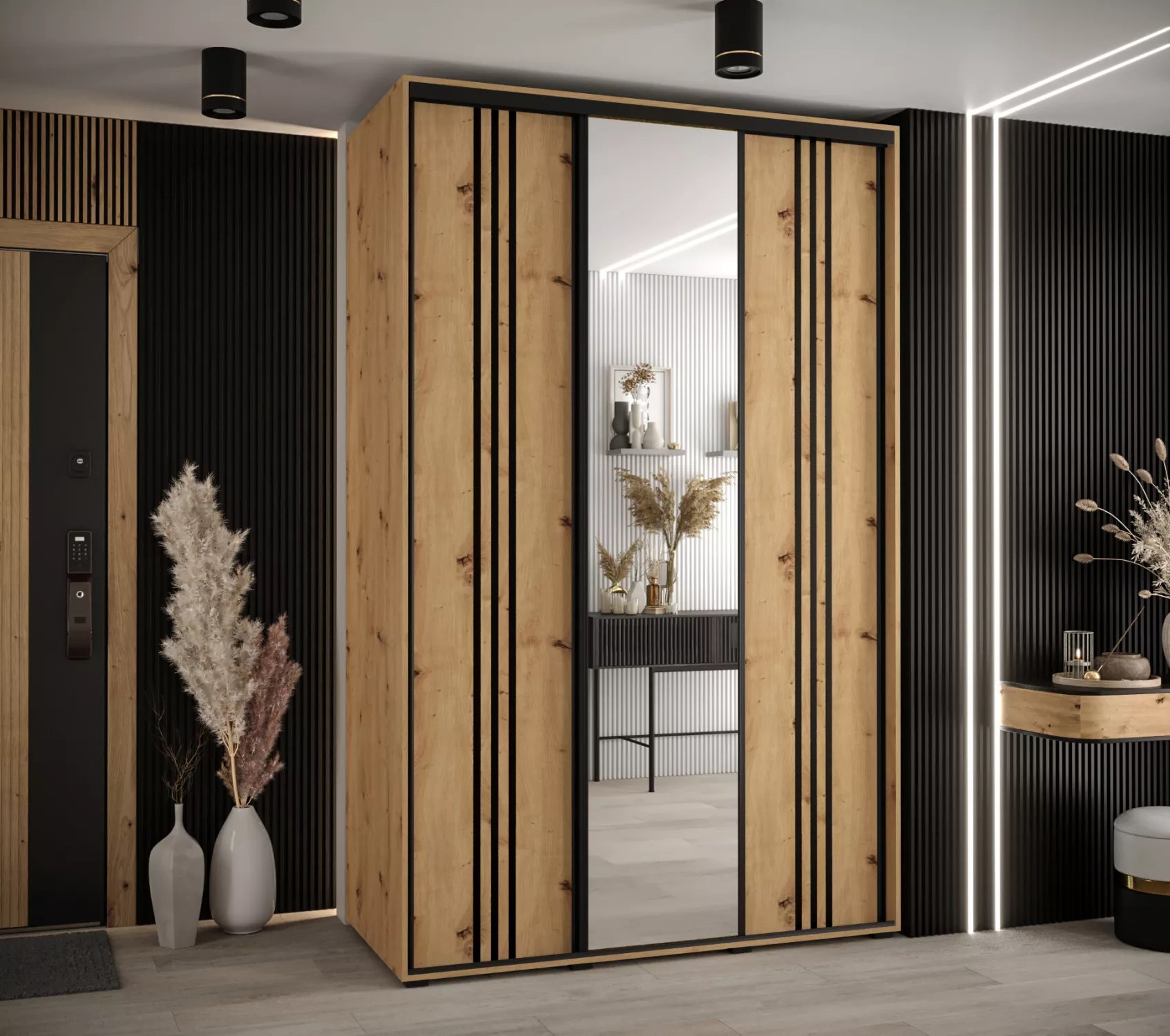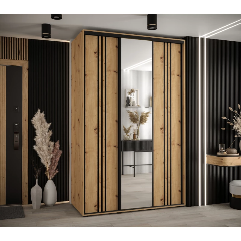 Šatní skříň YVONA 7 - 150/60 cm, dub artisan / černá