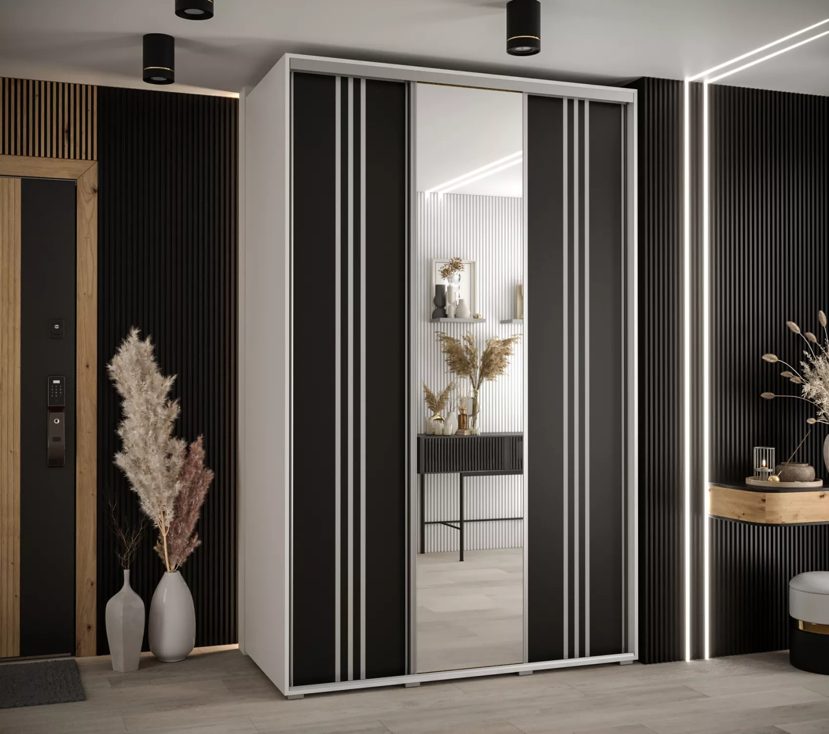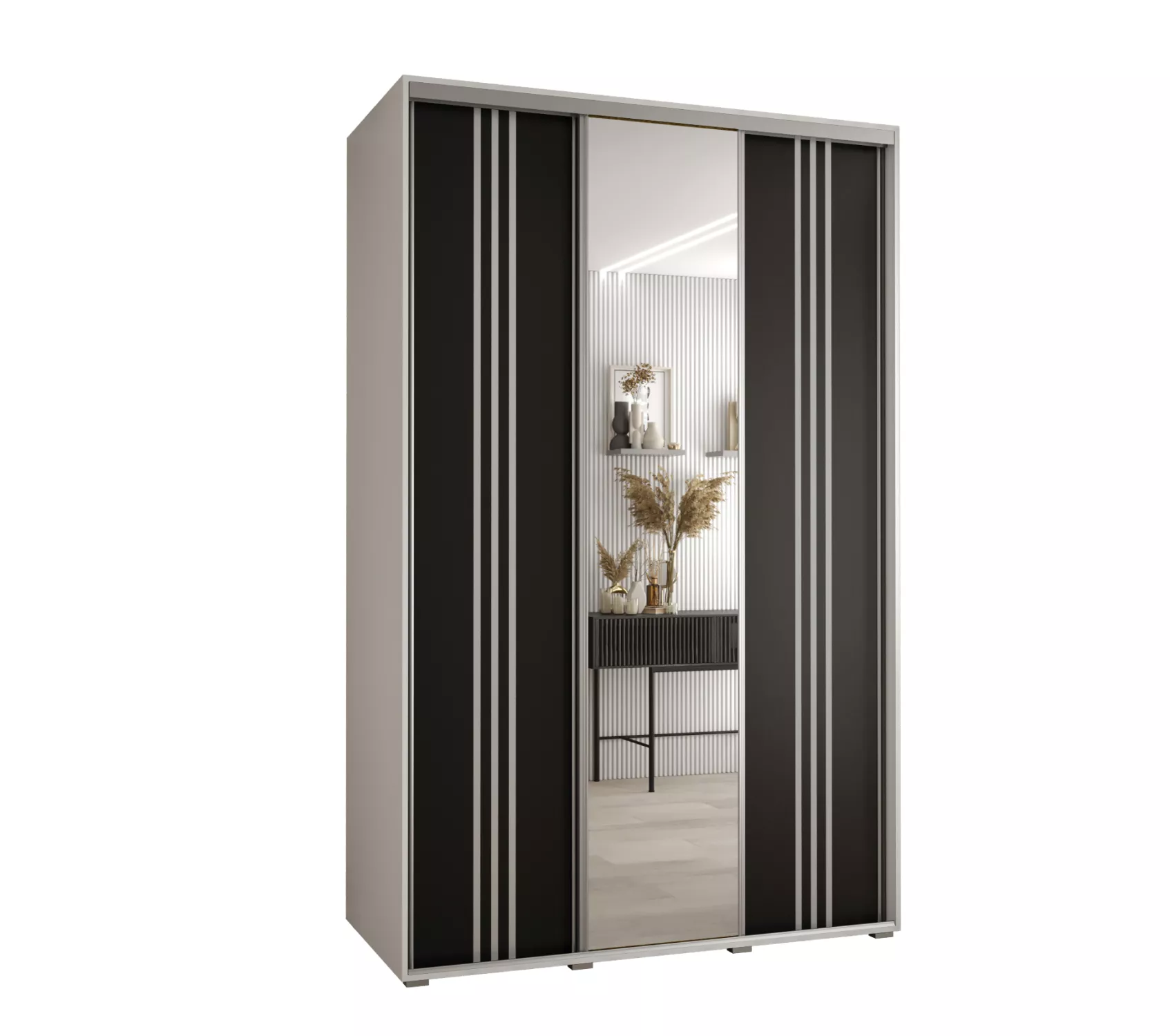 Šatní skříň YVONA 7 - 160/60 cm, bílá / černá / stříbrná