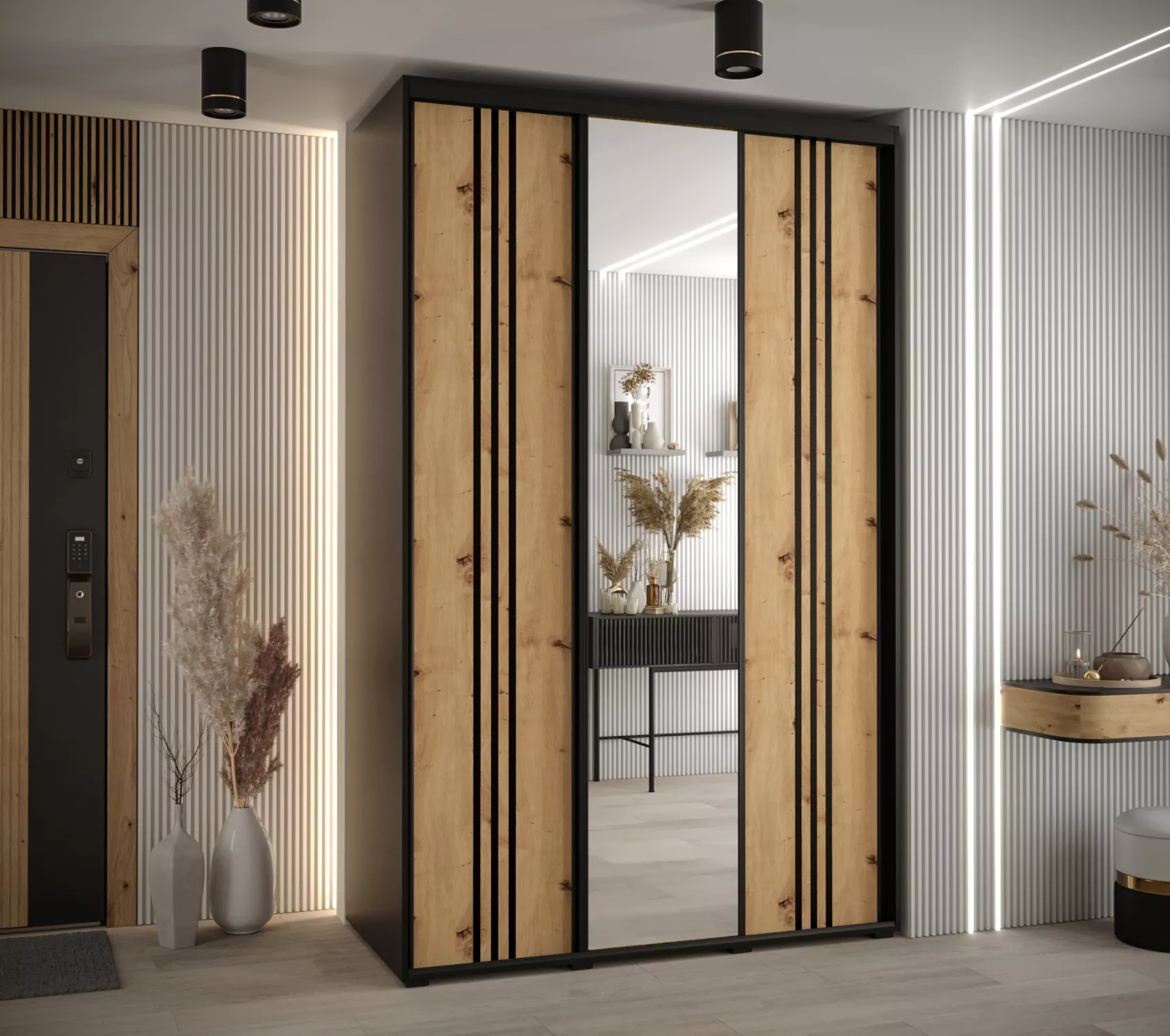 Šatní skříň YVONA 7 - 160/60 cm, černá / dub artisan / černá