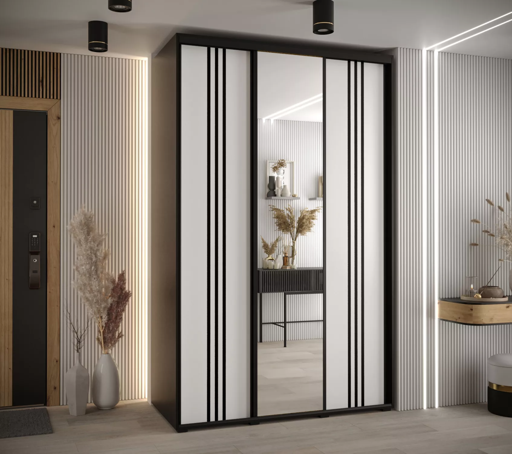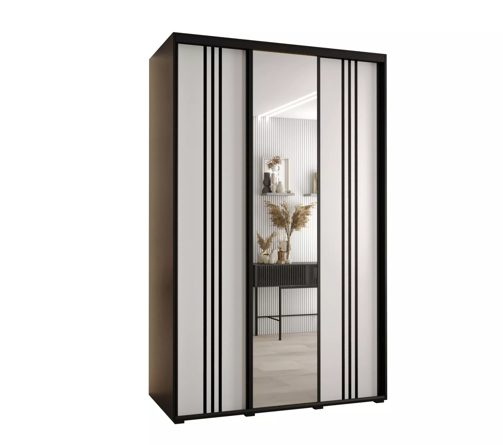 Šatní skříň YVONA 7 - 160/60 cm, černá / bílá / černá