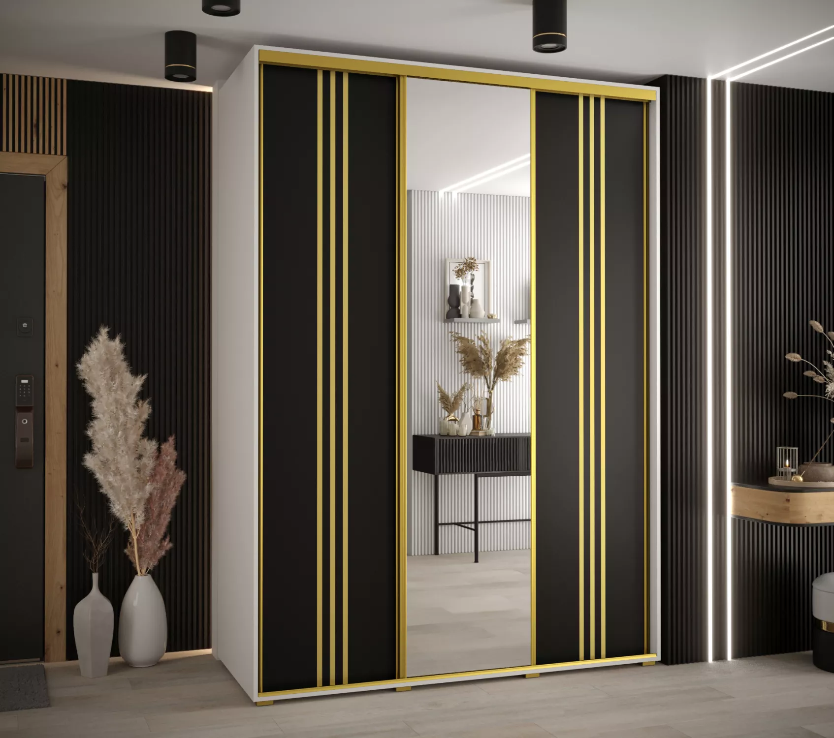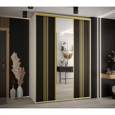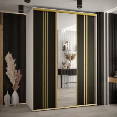 Šatní skříň YVONA 7 - 170/60 cm, bílá / černá / zlatá