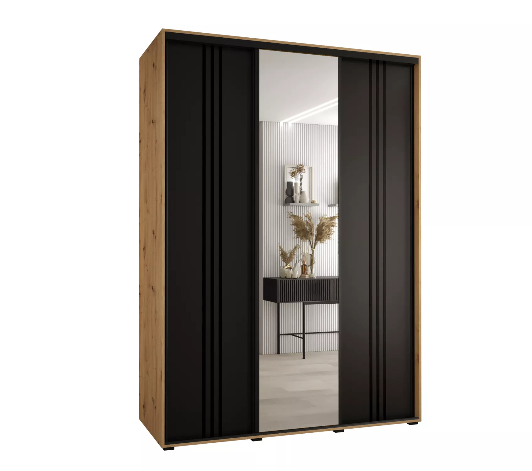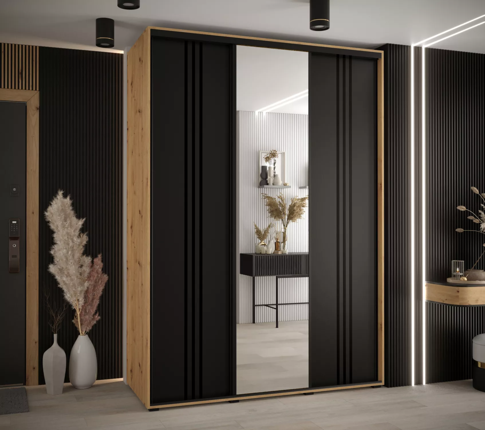 Šatní skříň YVONA 7 - 170/60 cm, dub artisan / černá / černá
