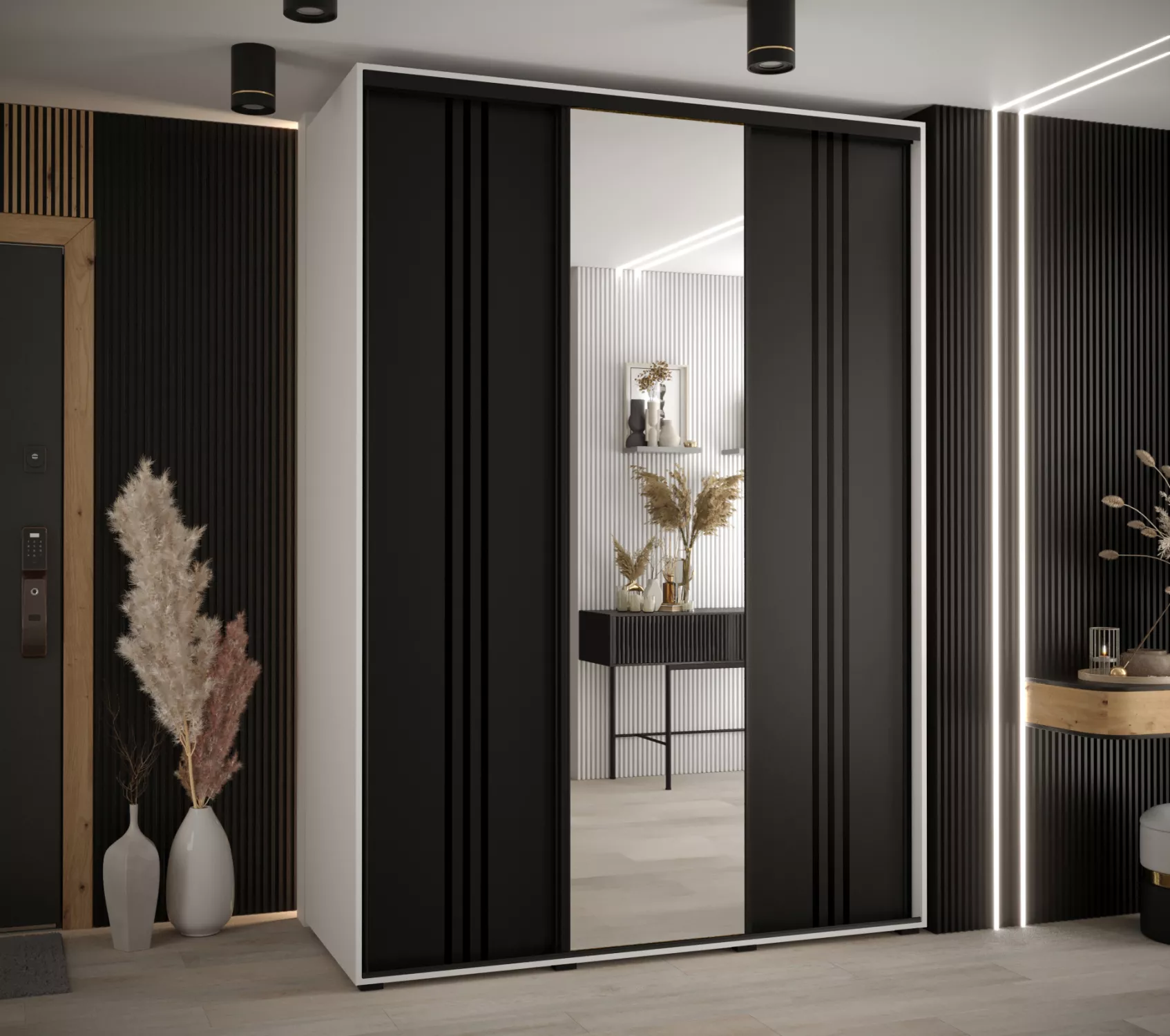 Šatní skříň YVONA 7 - 180/60 cm, bílá / černá / černá