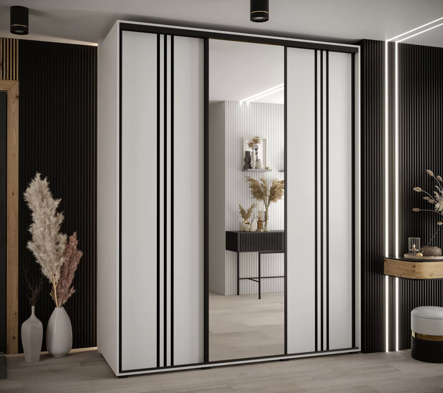 Šatní skříň YVONA 7 - 190/60 cm, bílá / černá