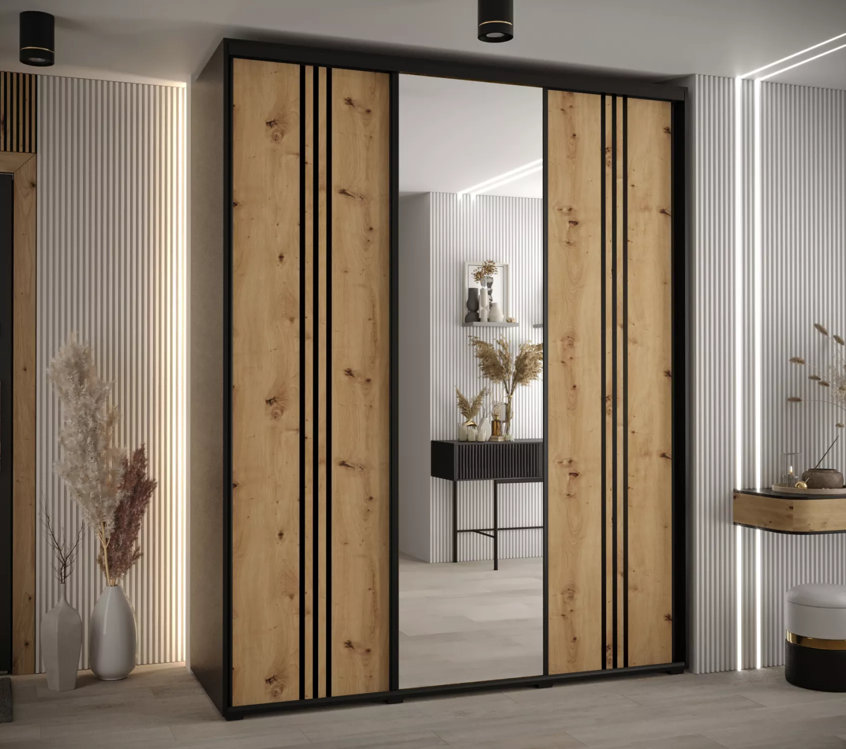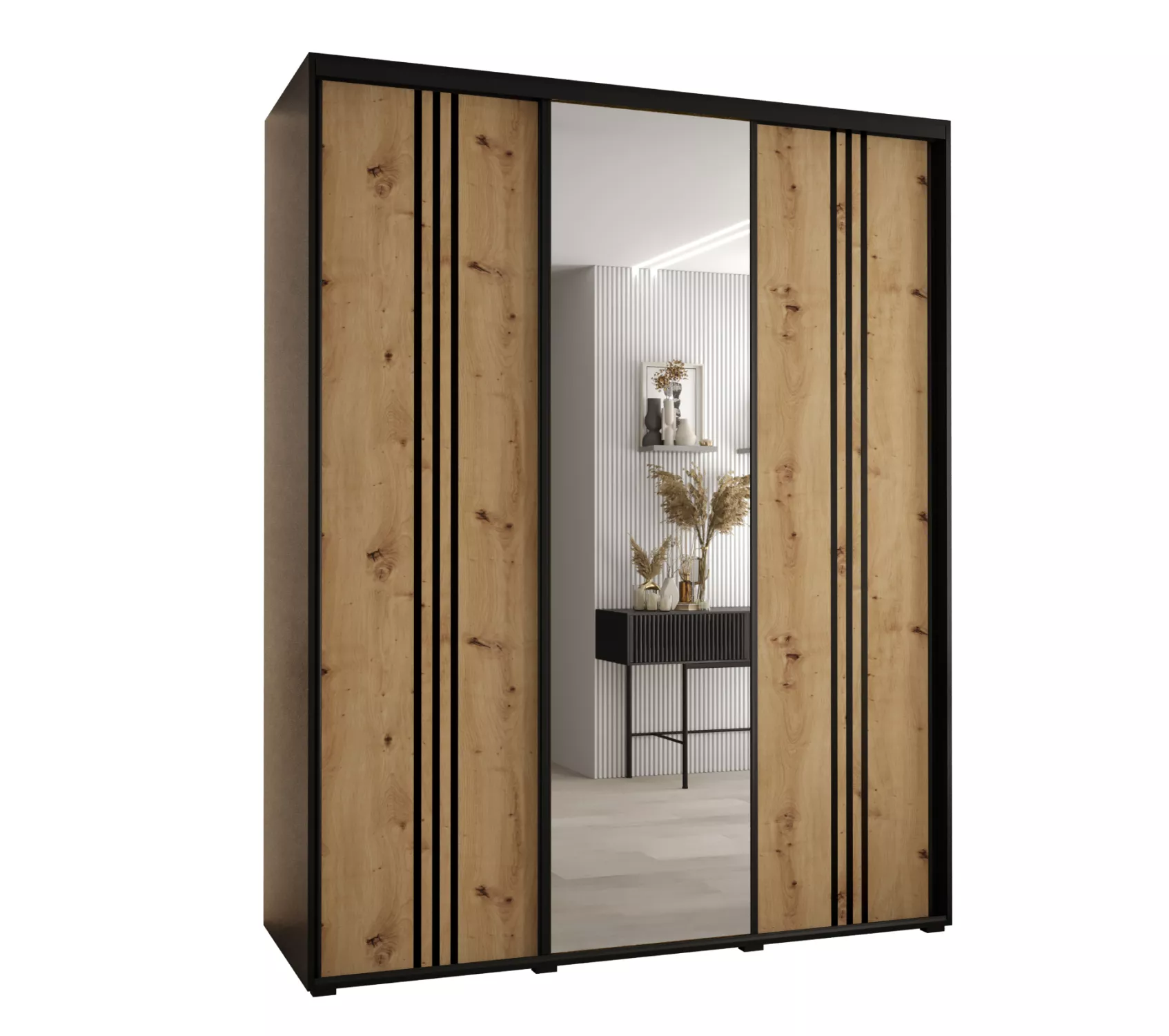 Šatní skříň YVONA 7 - 190/60 cm, černá / dub artisan / černá