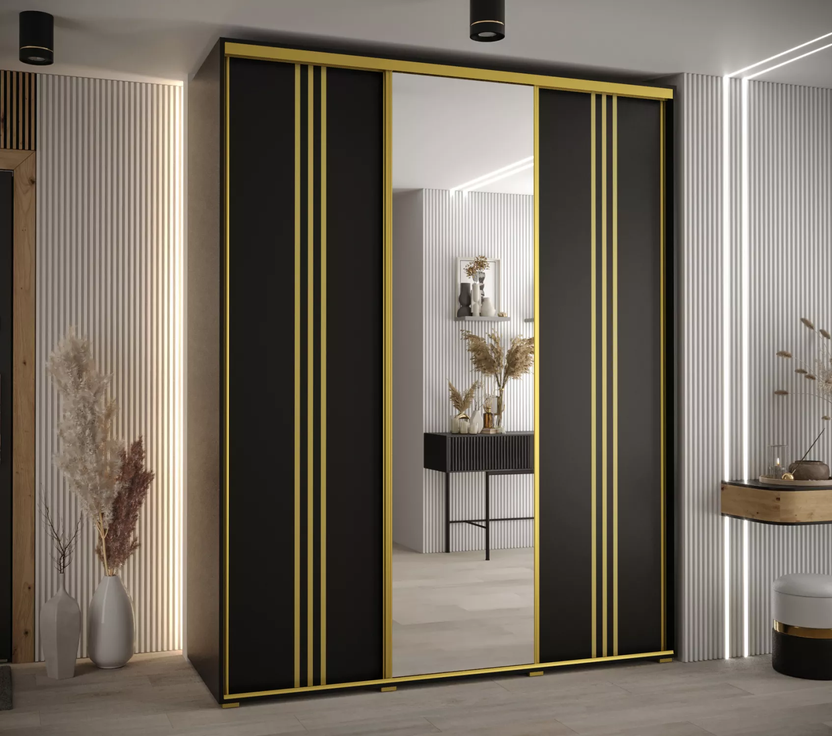 Šatní skříň YVONA 7 - 190/60 cm, černá / zlatá