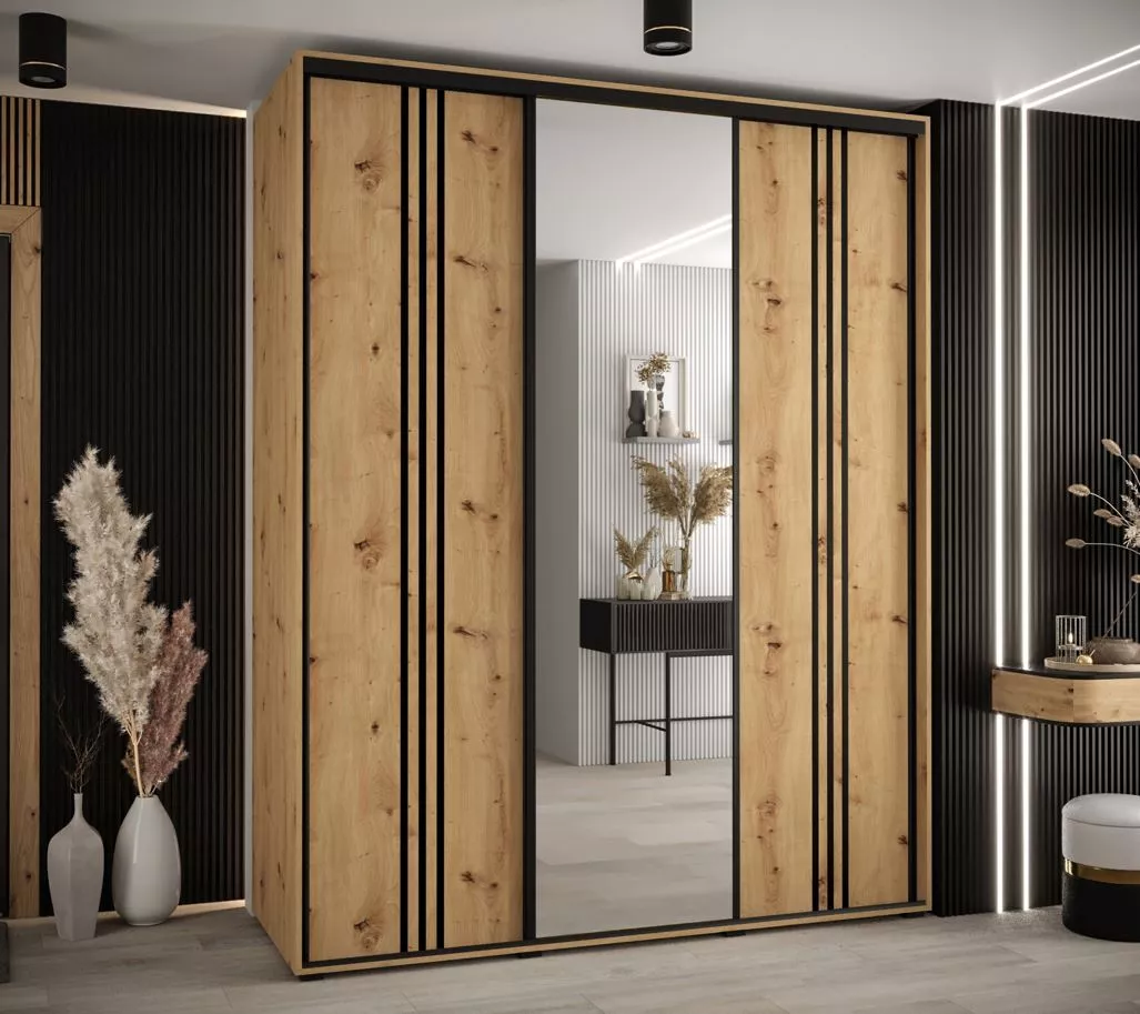 Šatní skříň YVONA 7 - 190/60 cm, dub artisan / černá