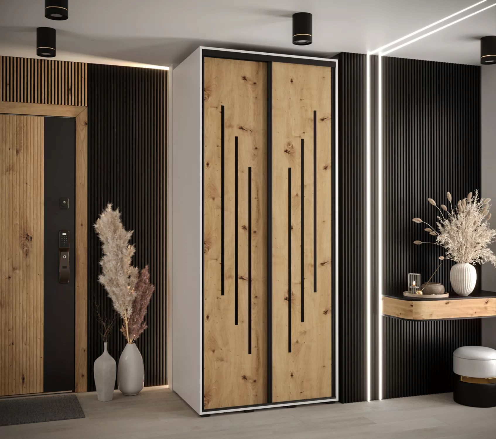 Šatní skříň YVONA 8 - 100/60 cm, bílá / dub artisan / černá