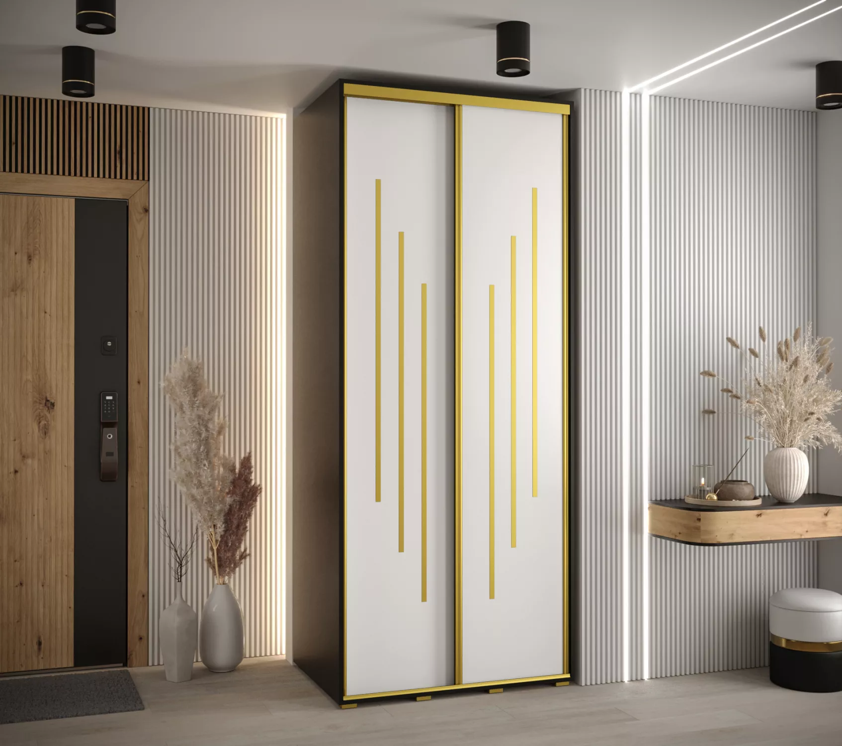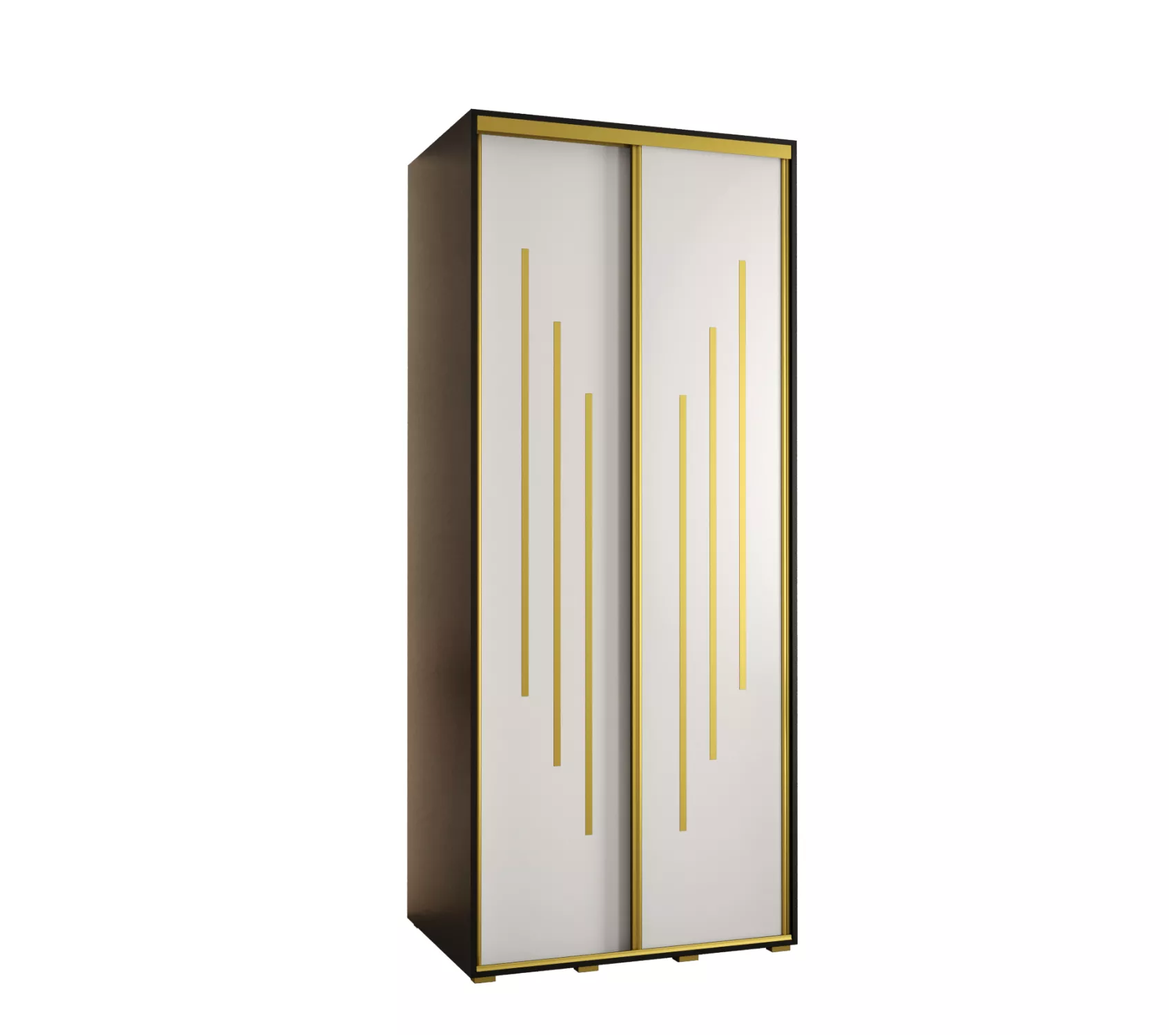 Šatní skříň YVONA 8 - 100/60 cm, černá / bílá / zlatá