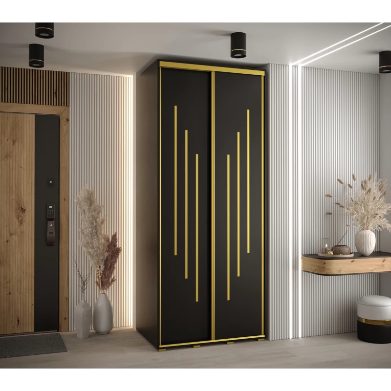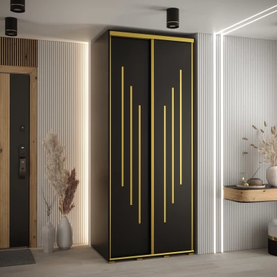 Šatní skříň YVONA 8 - 100/60 cm, černá / zlatá