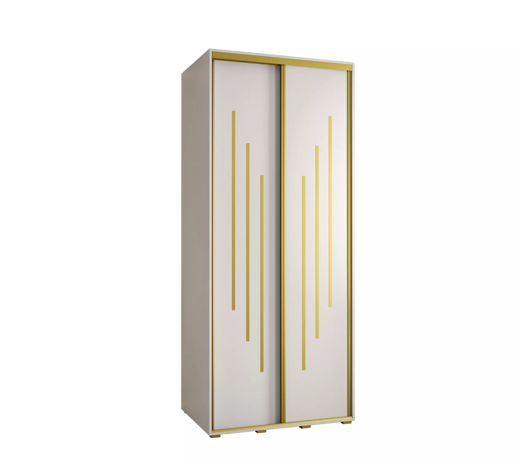 Šatní skříň YVONA 8 - 110/60 cm, bílá / zlatá