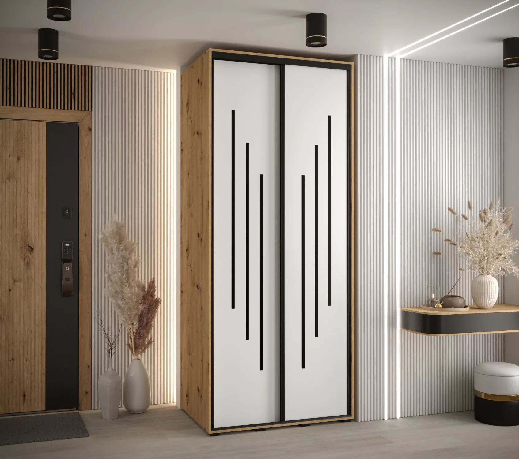 Šatní skříň YVONA 8 - 110/60 cm, dub artisan / bílá / černá
