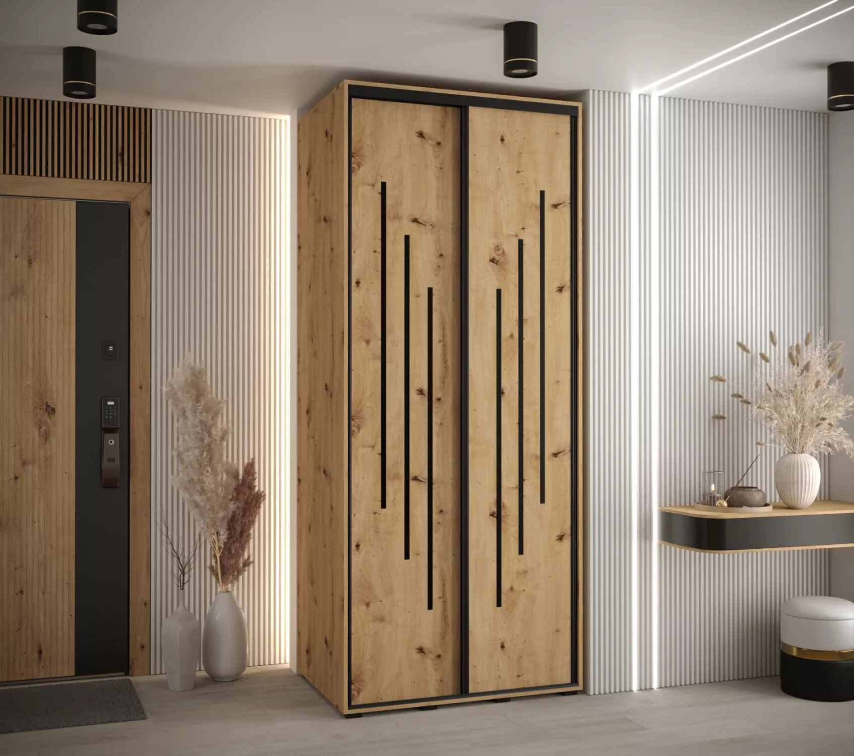 Šatní skříň YVONA 8 - 110/60 cm, dub artisan / černá