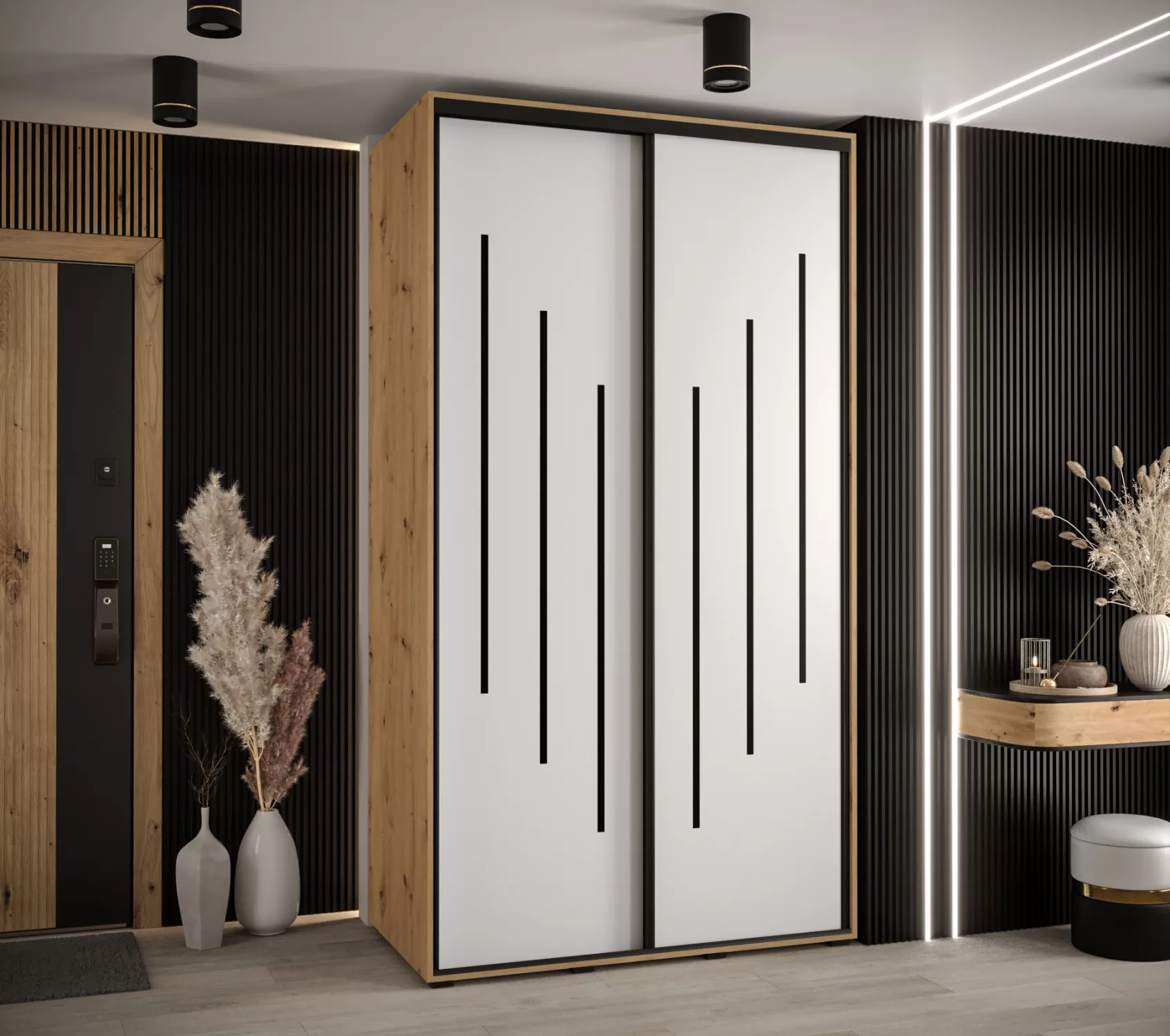 Šatní skříň YVONA 8 - 130/60 cm, dub artisan / bílá / černá