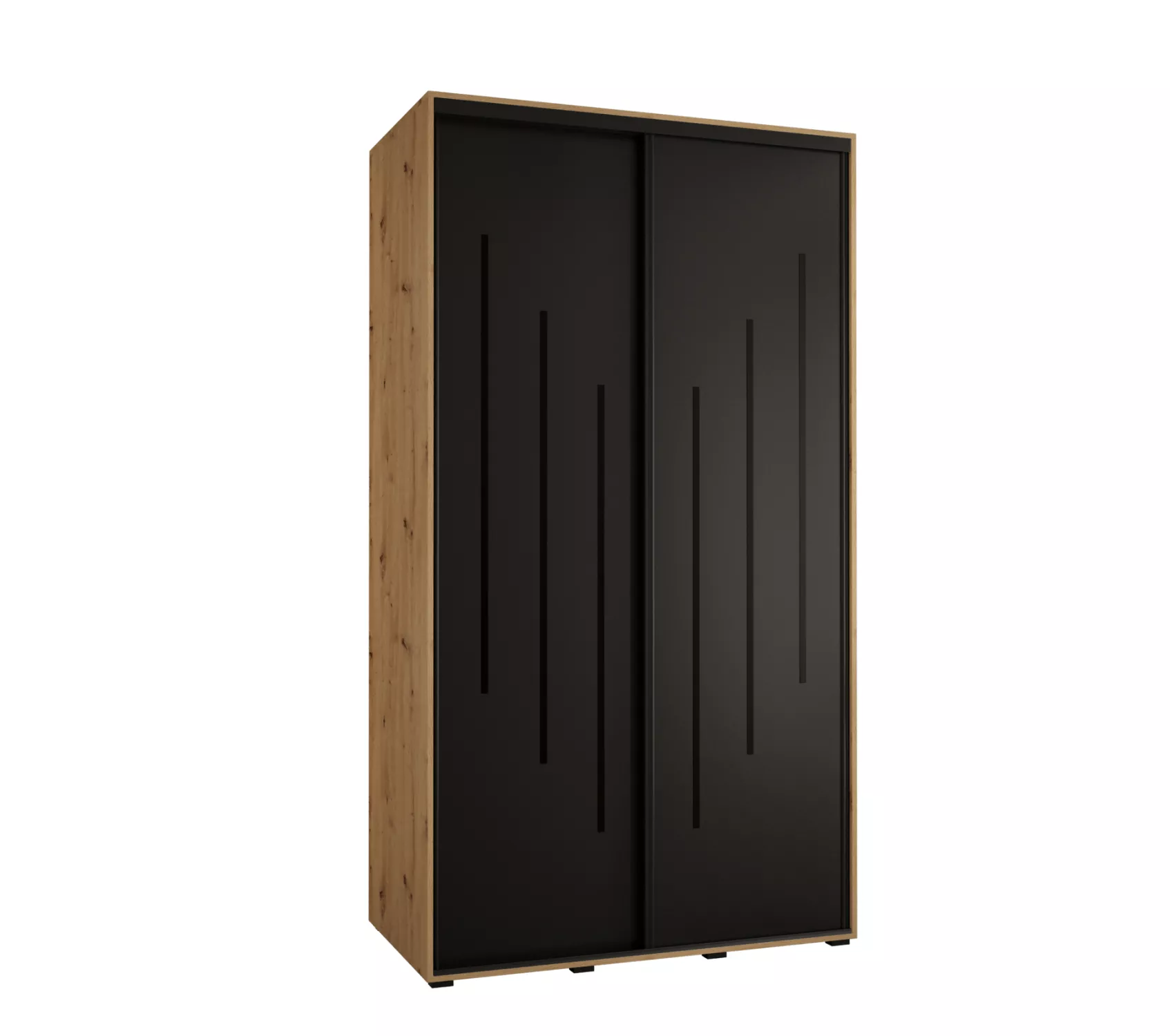 Šatní skříň YVONA 8 - 130/60 cm, dub artisan / černá / černá