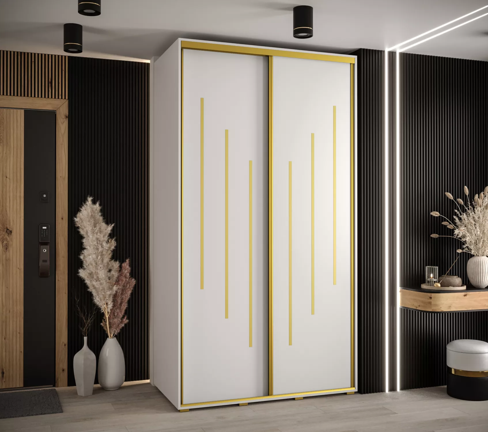 Šatní skříň YVONA 8 - 140/60 cm, bílá / zlatá
