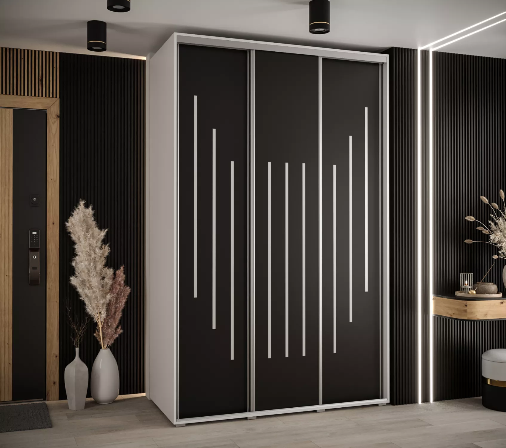 Šatní skříň YVONA 8 - 160/60 cm, bílá / černá / stříbrná