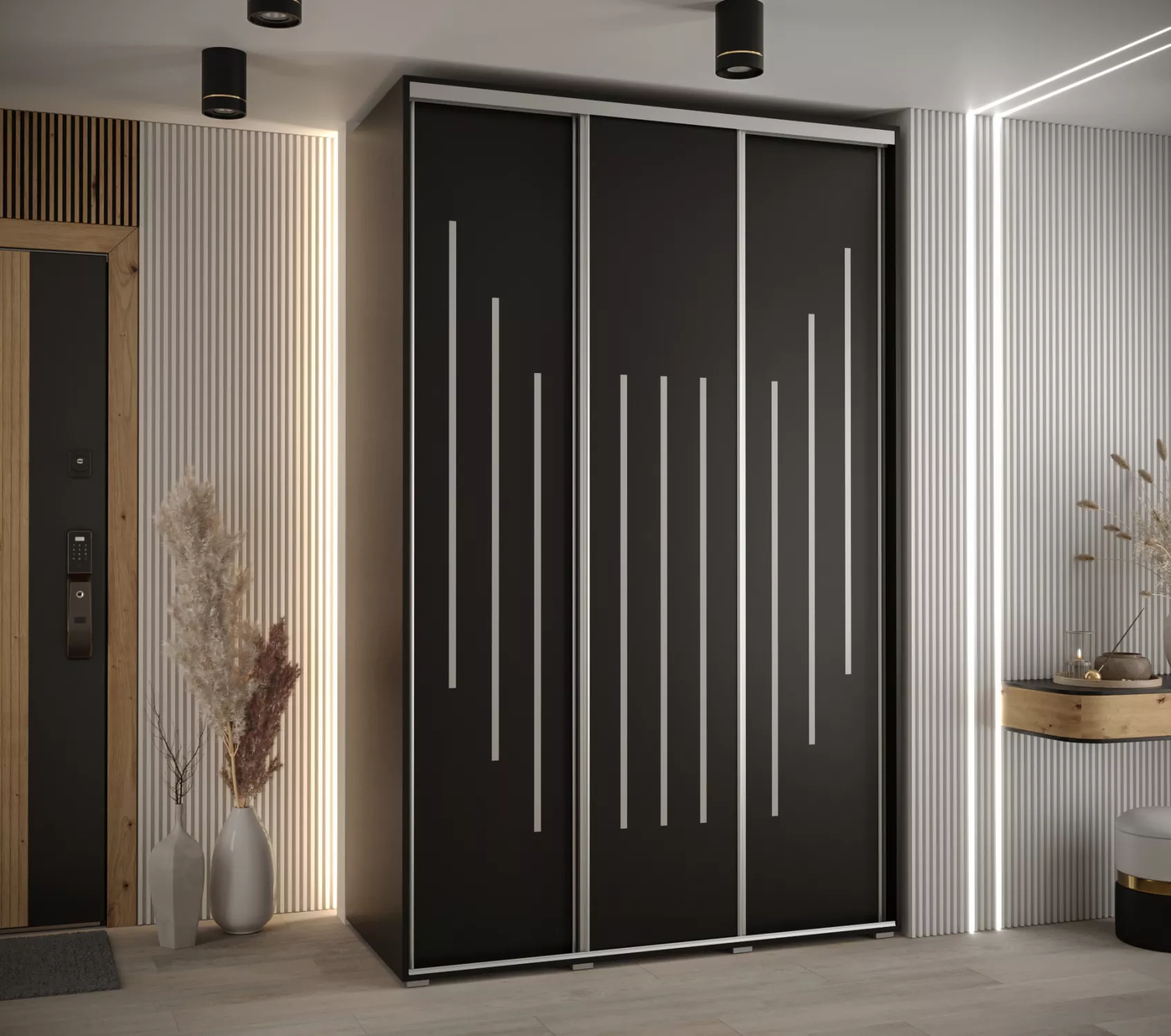 Šatní skříň YVONA 8 - 160/60 cm, černá / stříbrná