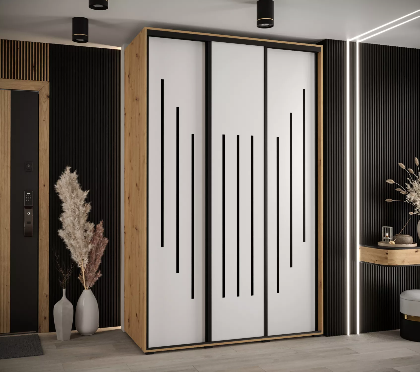 Šatní skříň YVONA 8 - 160/60 cm, dub artisan / bílá / černá