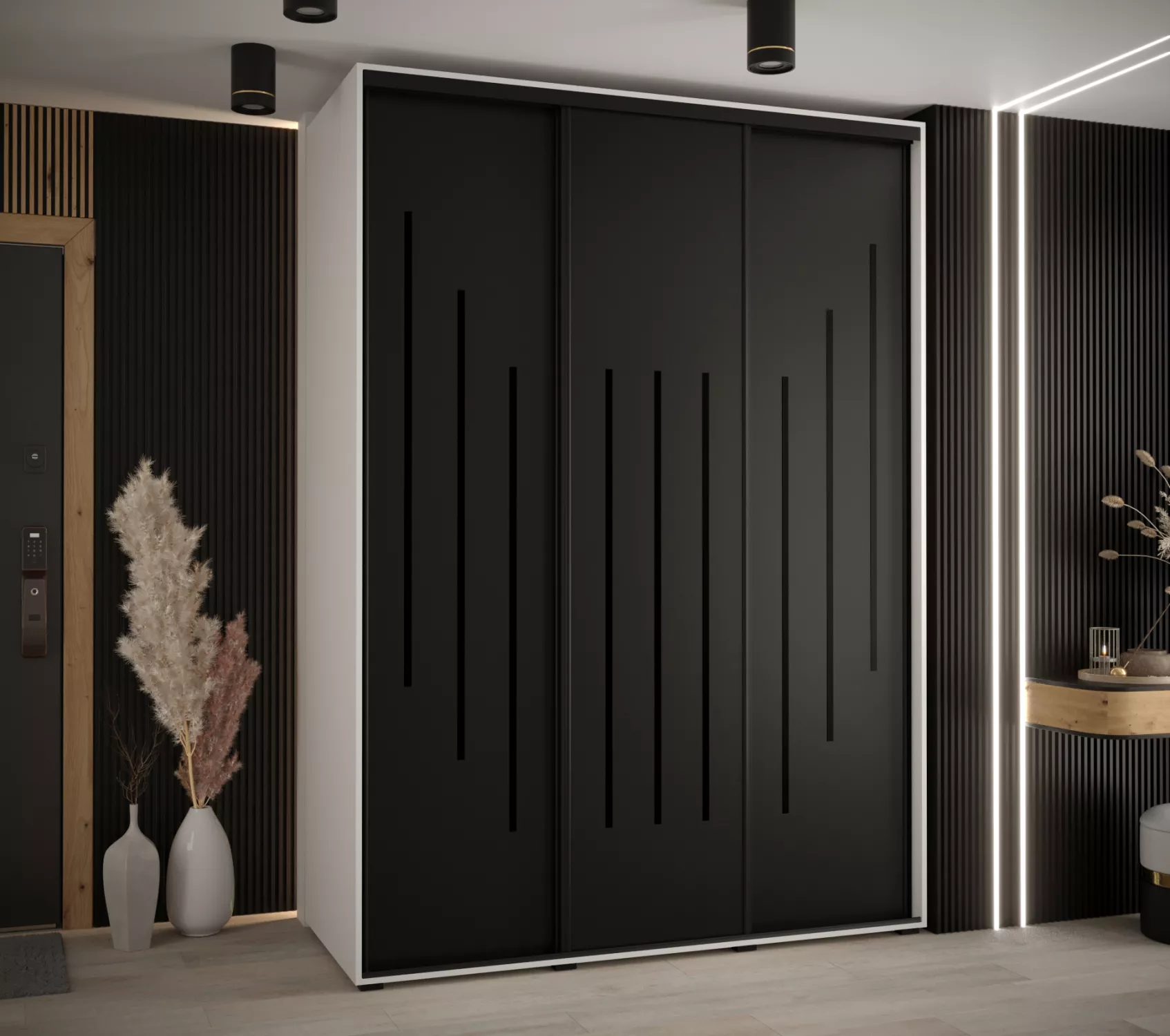 Šatní skříň YVONA 8 - 170/60 cm, bílá / černá / černá