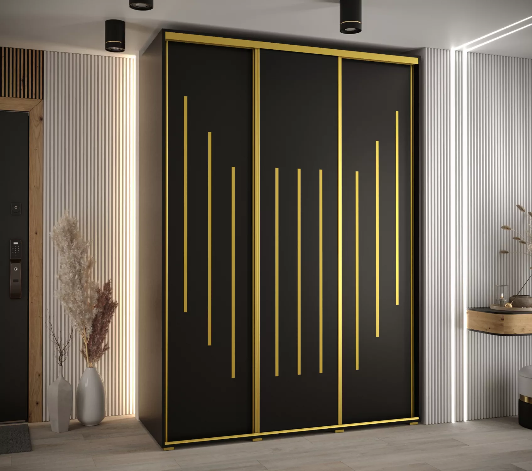 Šatní skříň YVONA 8 - 170/60 cm, černá / zlatá