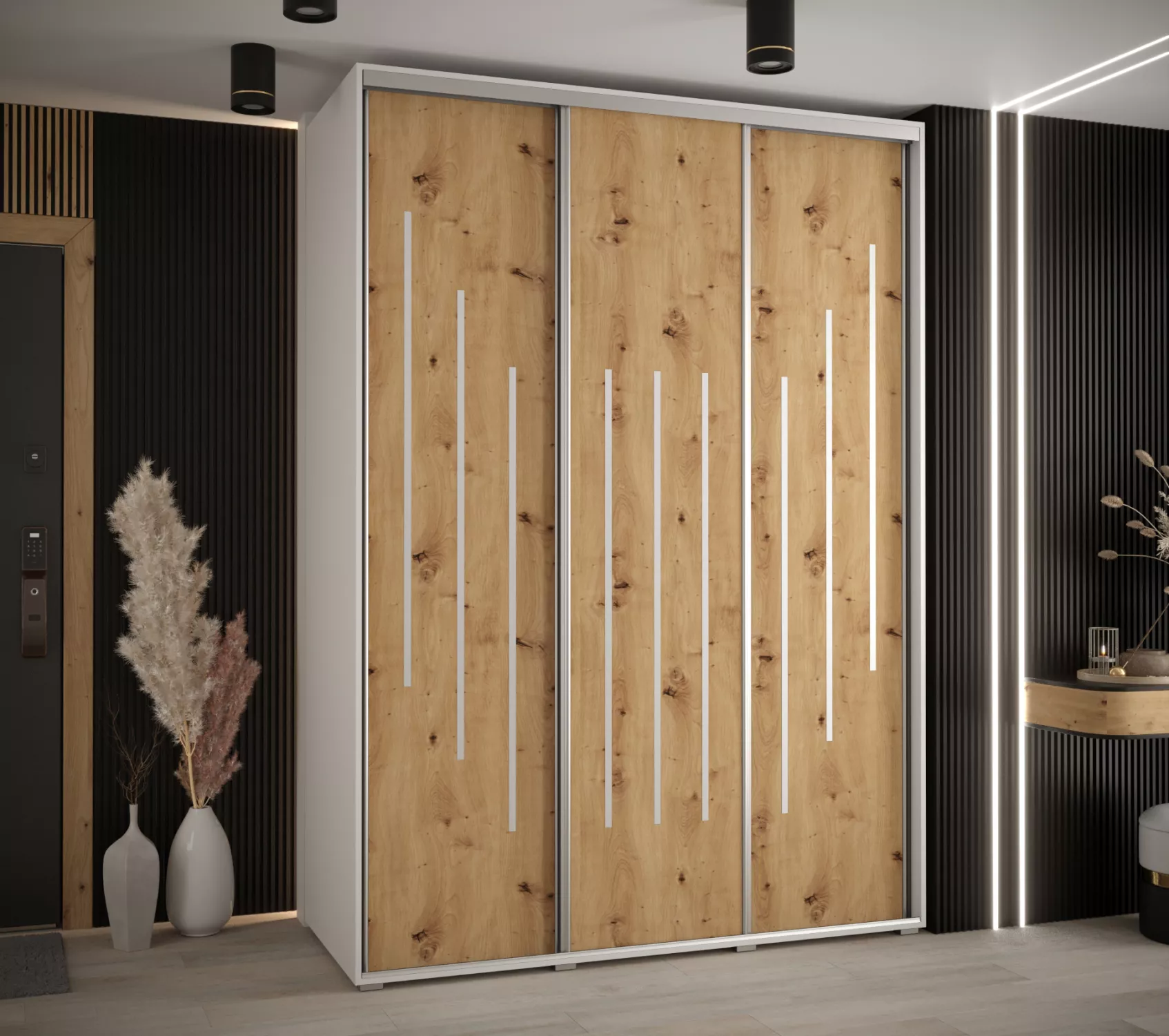 Šatní skříň YVONA 8 - 180/60 cm, bílá / dub artisan / stříbrná
