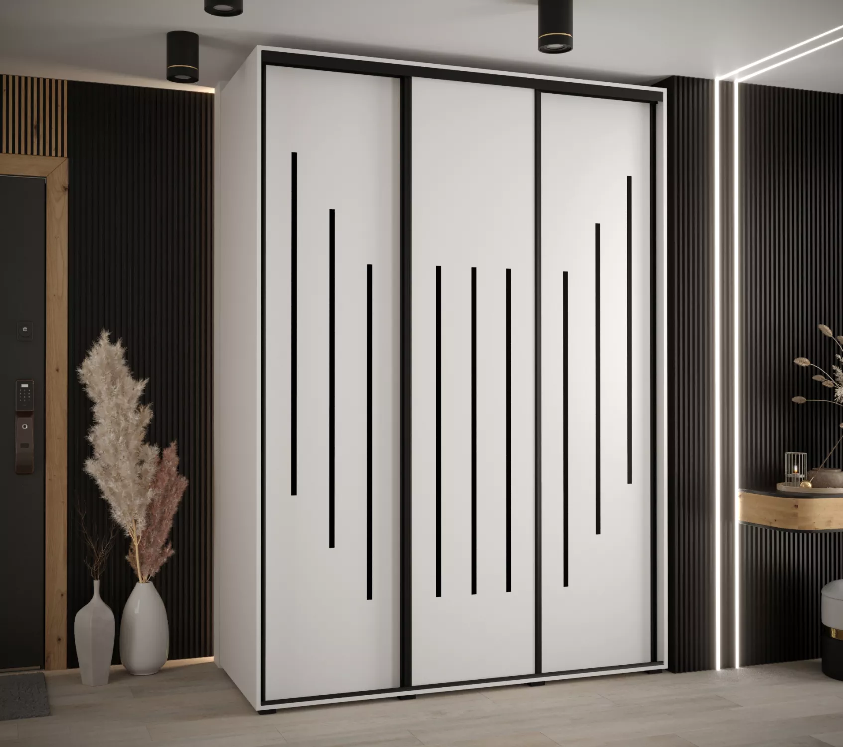 Šatní skříň YVONA 8 - 180/60 cm, bílá / černá