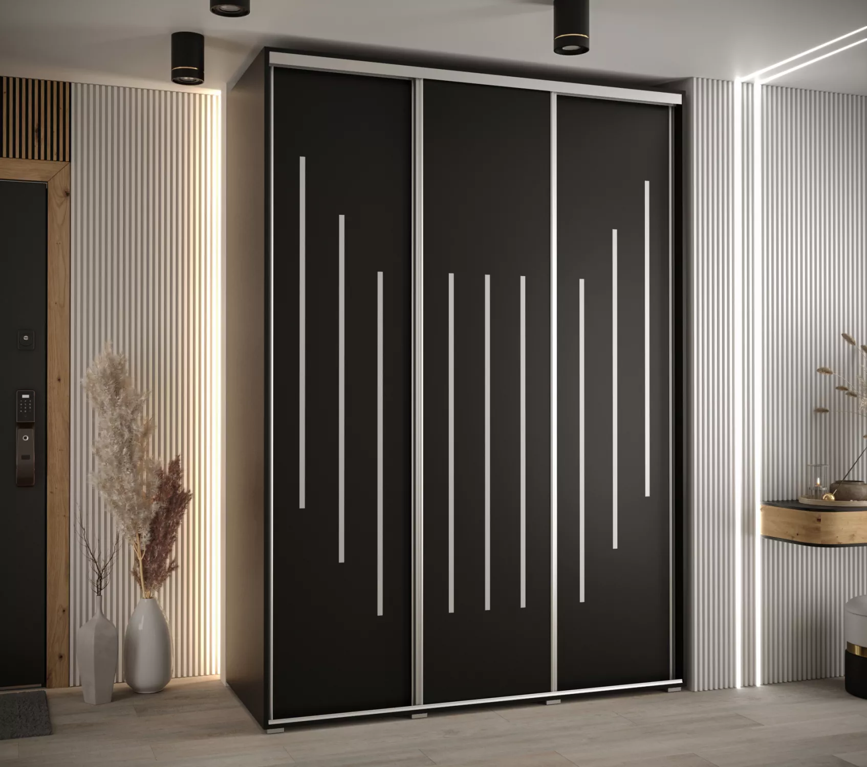 Šatní skříň YVONA 8 - 180/60 cm, černá / stříbrná
