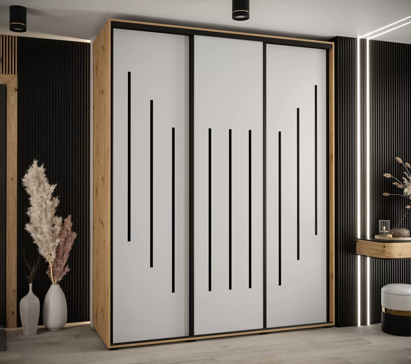 Šatní skříň YVONA 8 - 190/60 cm, dub artisan / bílá / černá