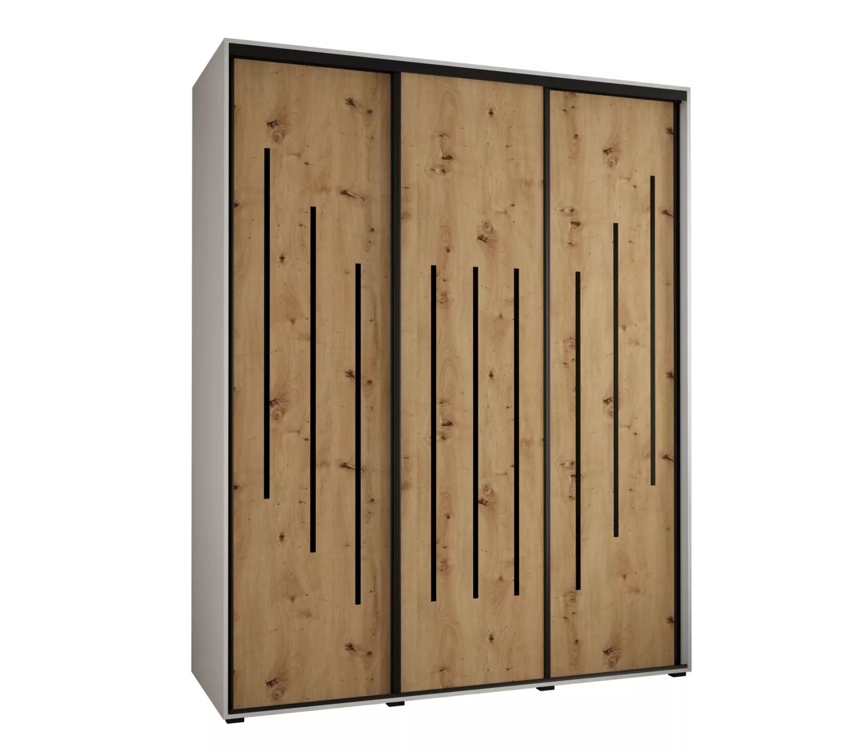 Šatní skříň YVONA 8 - 200/60 cm, bílá / dub artisan / černá