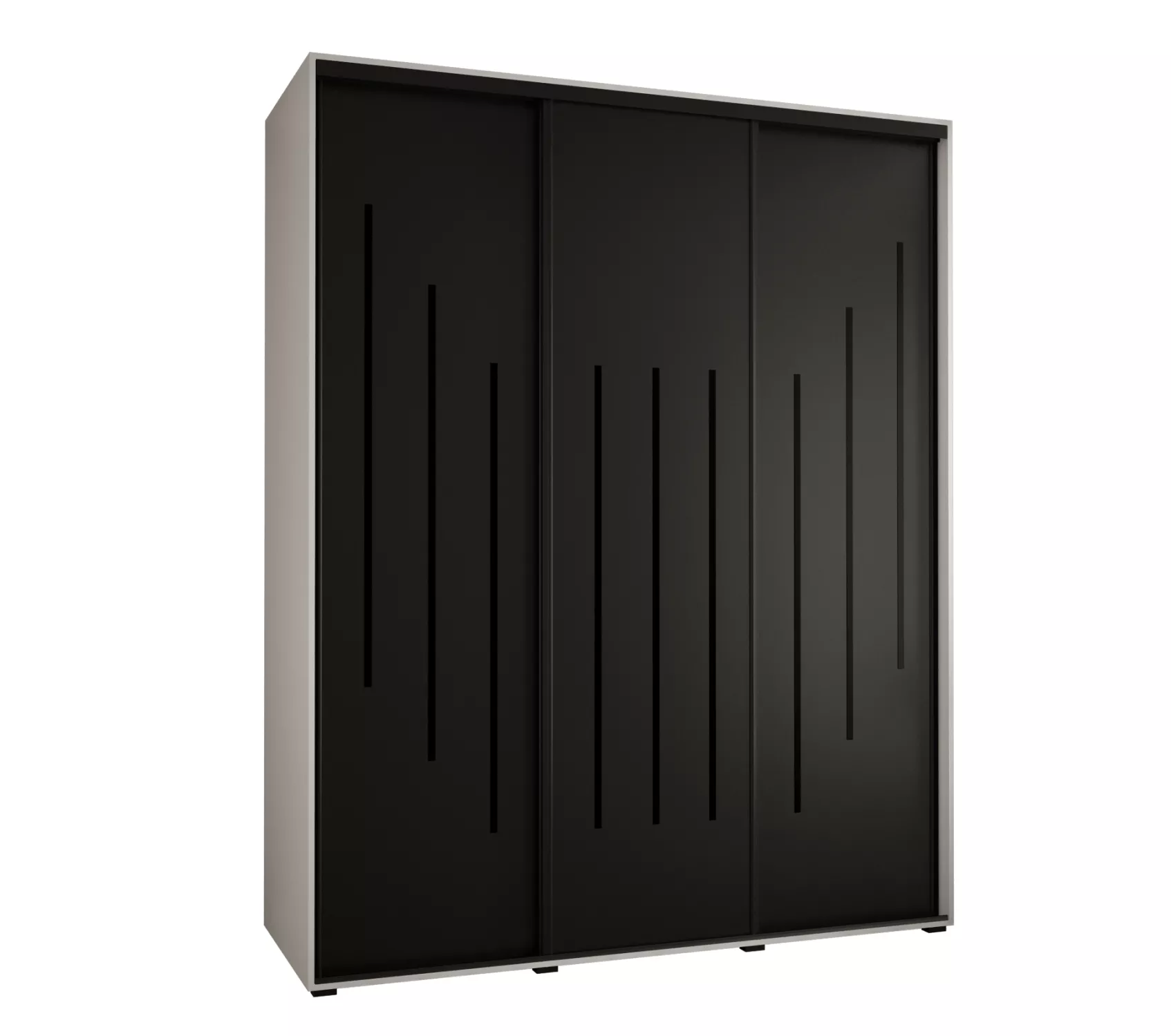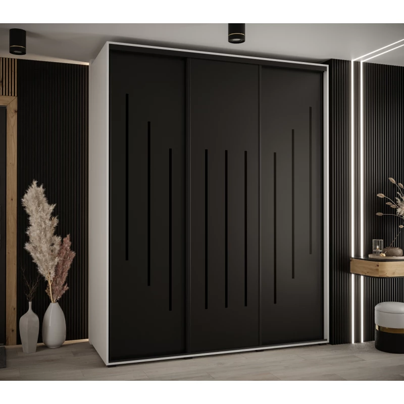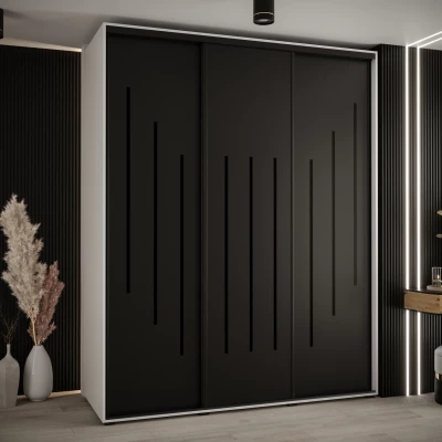 Šatní skříň YVONA 8 - 200/60 cm, bílá / černá / černá