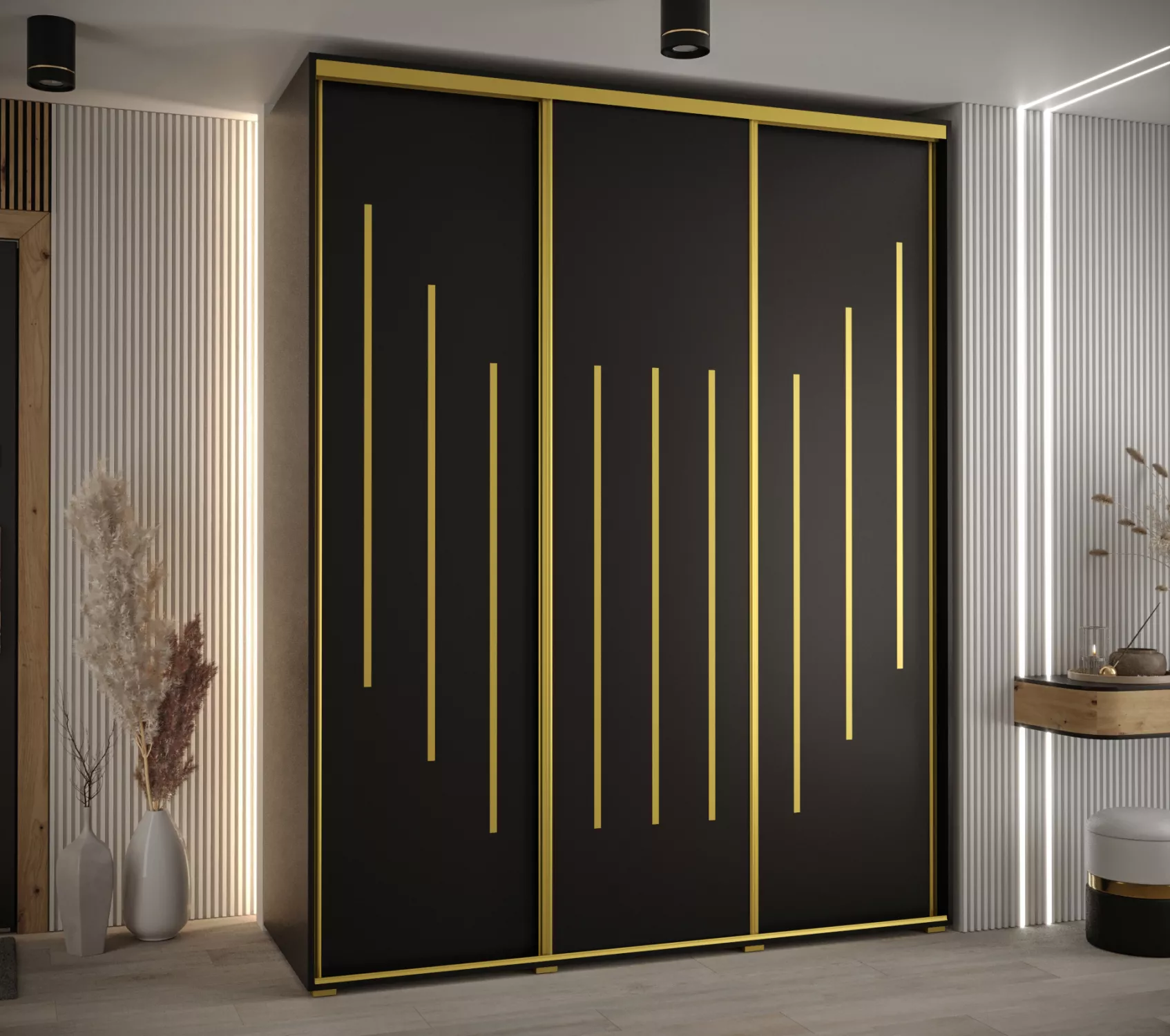 Šatní skříň YVONA 8 - 200/60 cm, černá / zlatá