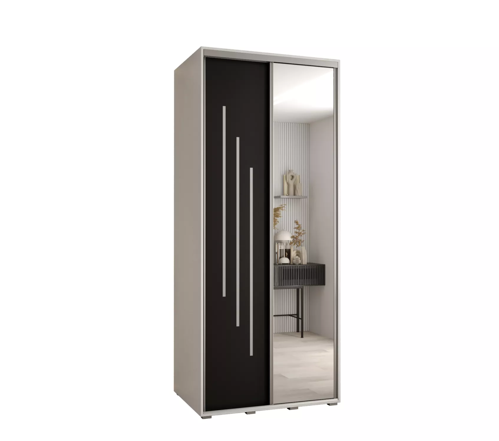 Šatní skříň YVONA 9 - 100/60 cm, bílá / černá / stříbrná