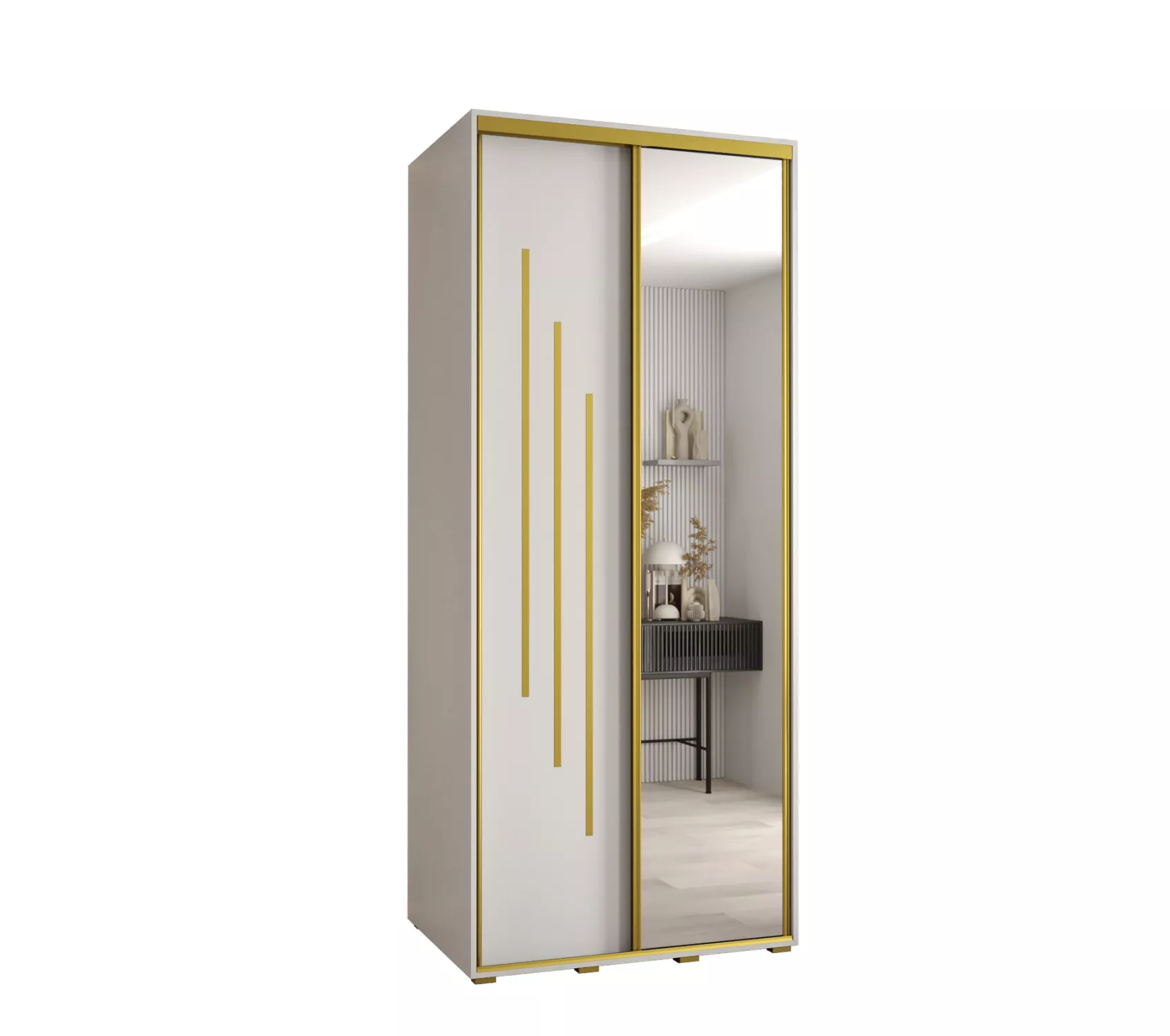 Šatní skříň YVONA 9 - 100/60 cm, bílá / zlatá