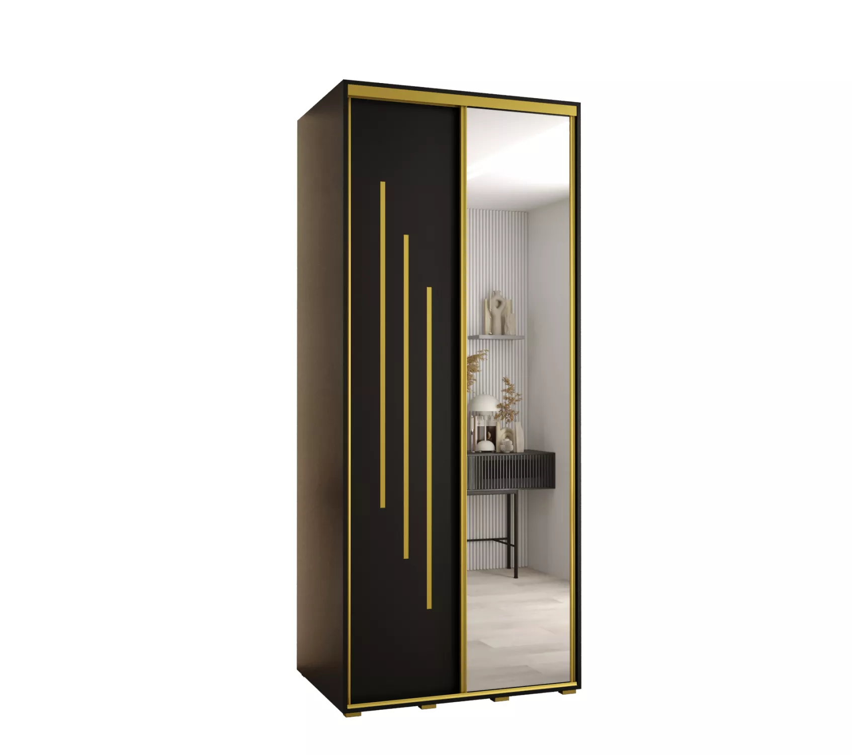 Šatní skříň YVONA 9 - 100/60 cm, černá / zlatá