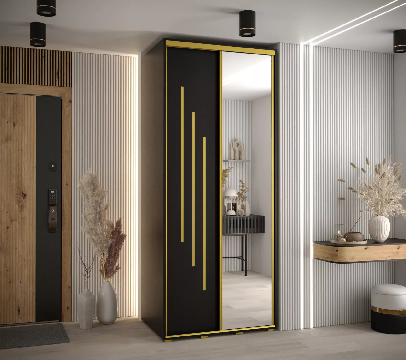 Šatní skříň YVONA 9 - 110/60 cm, černá / zlatá