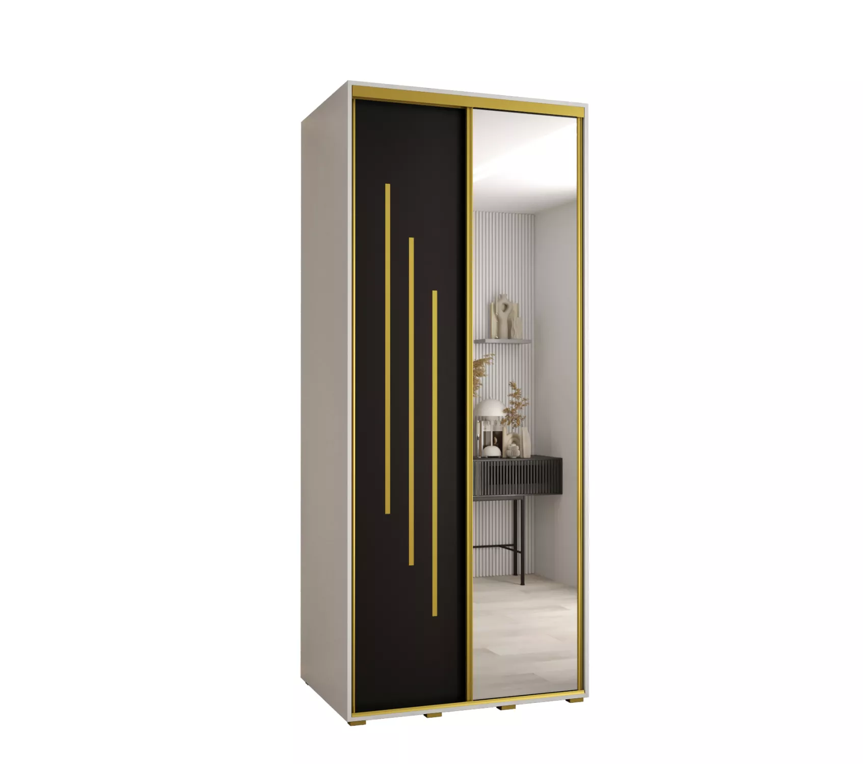Šatní skříň YVONA 9 - 120/60 cm, bílá / černá / zlatá