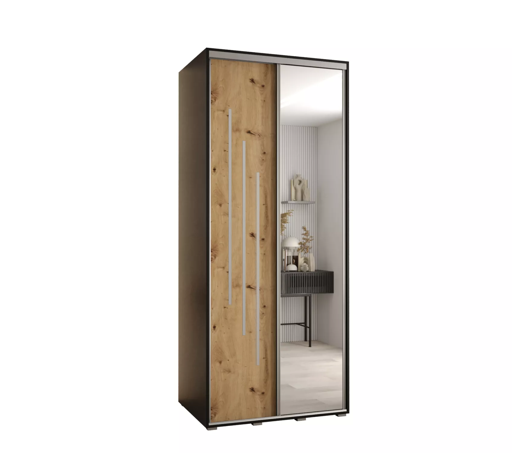 Šatní skříň YVONA 9 - 120/60 cm, černá / dub artisan / stříbrná