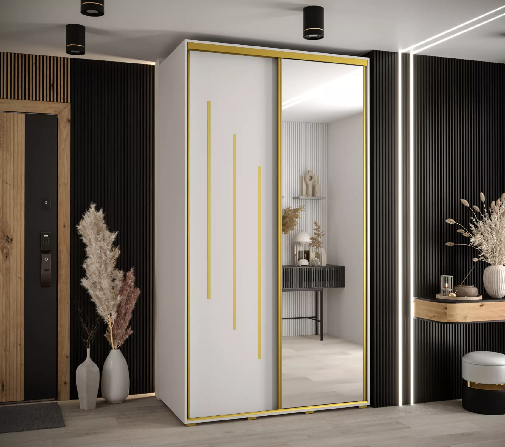 Šatní skříň YVONA 9 - 130/60 cm, bílá / zlatá