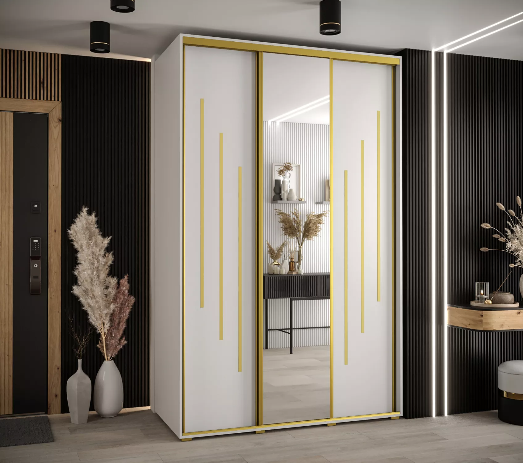 Šatní skříň YVONA 9 - 150/60 cm, bílá / zlatá