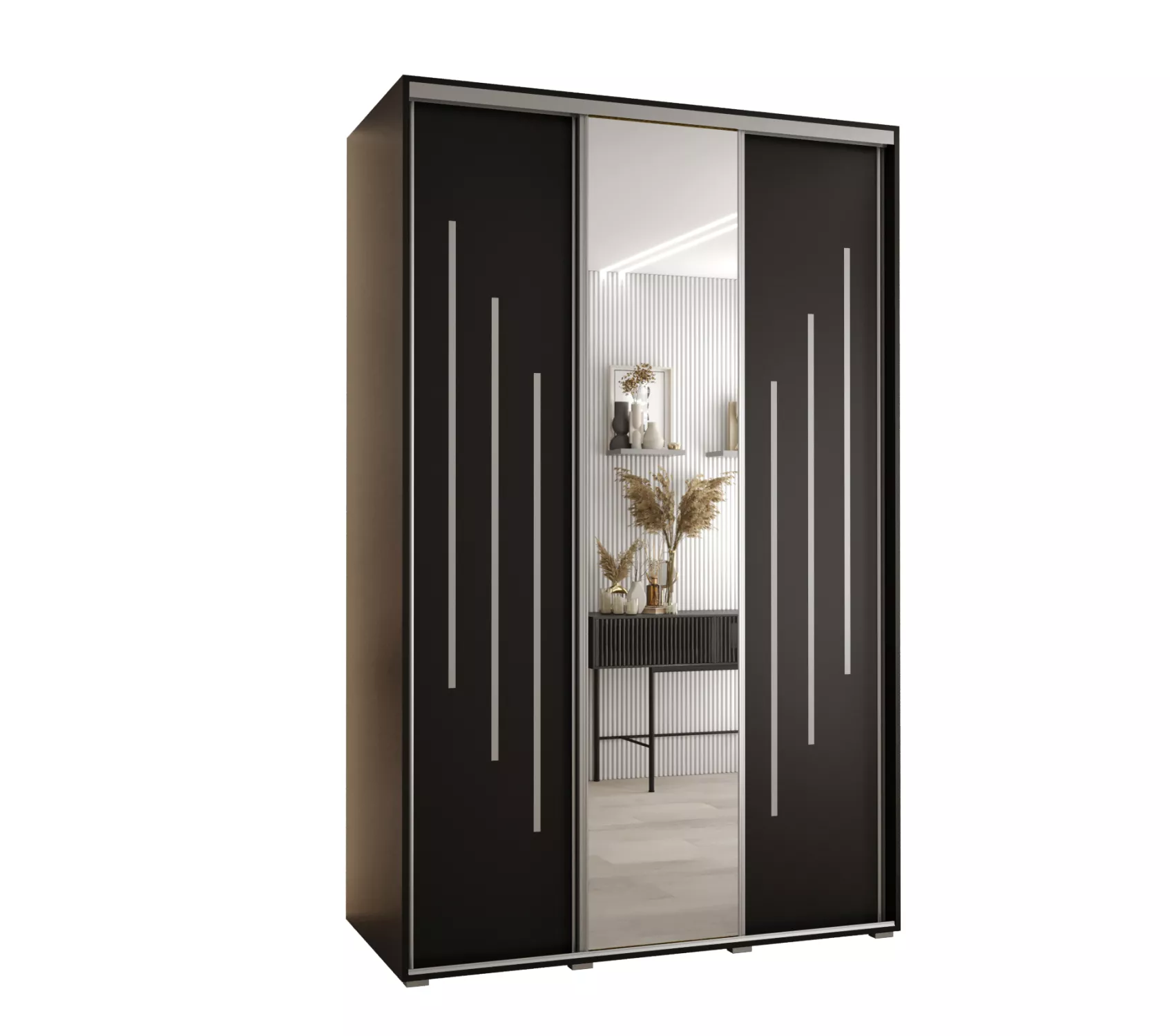 Šatní skříň YVONA 9 - 150/60 cm, černá / stříbrná