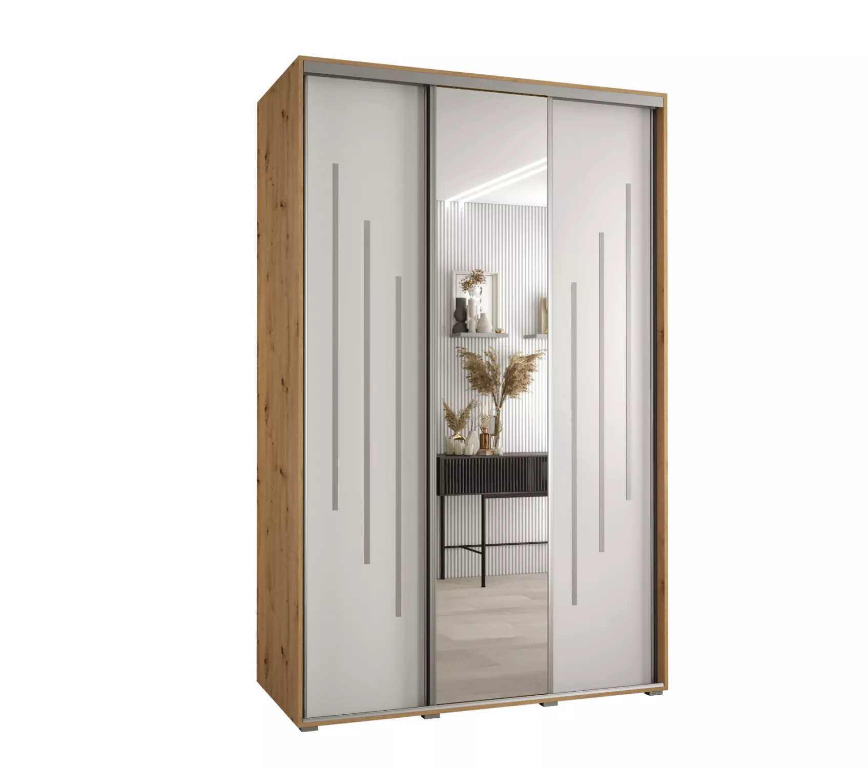 Šatní skříň YVONA 9 - 150/60 cm, dub artisan / bílá / stříbrná