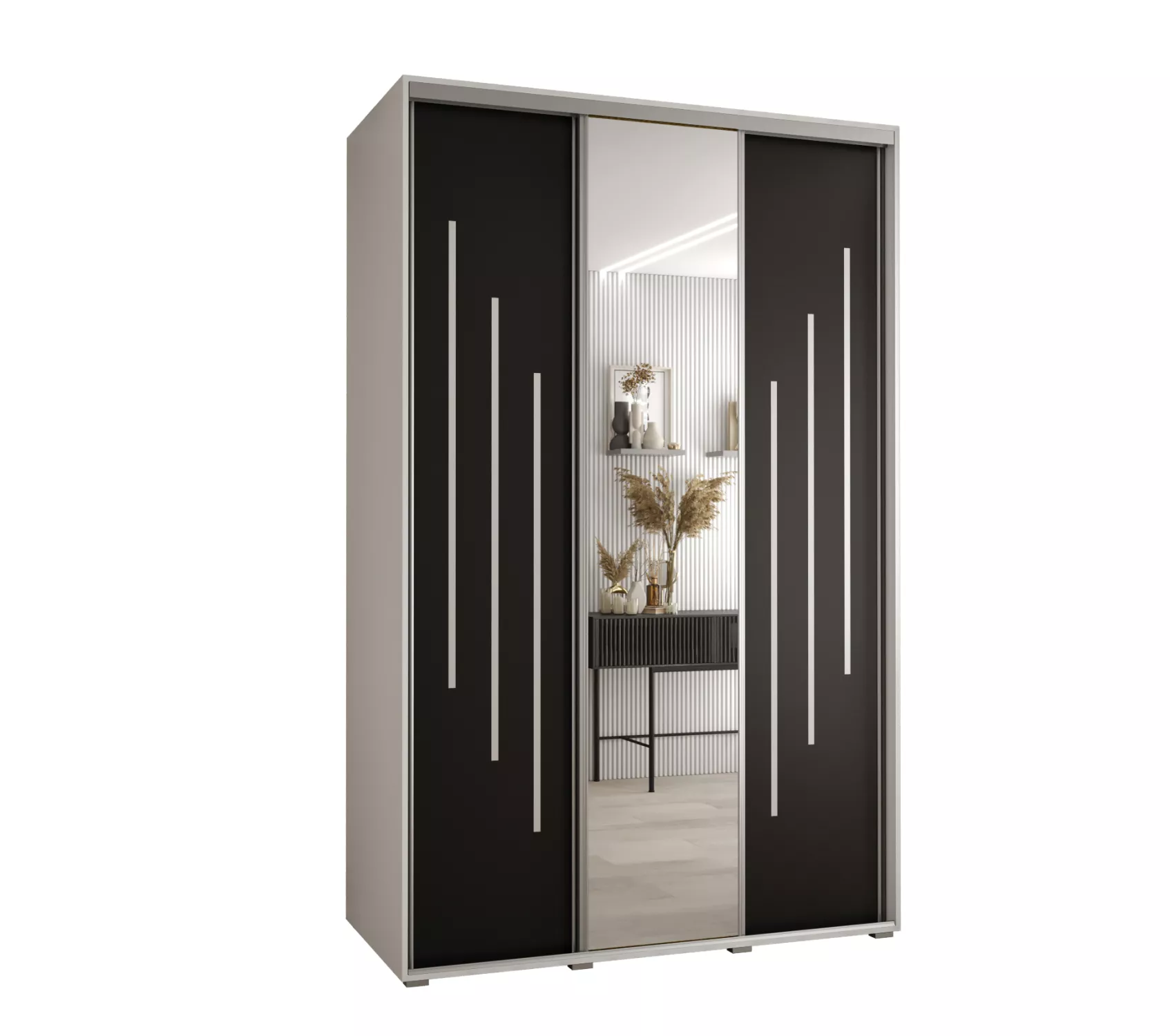 Šatní skříň YVONA 9 - 160/60 cm, bílá / černá / stříbrná
