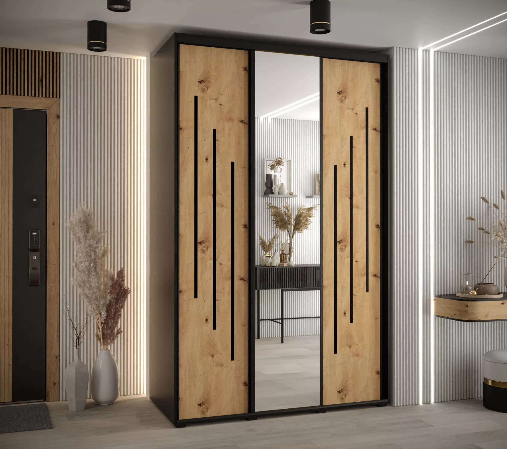Šatní skříň YVONA 9 - 160/60 cm, černá / dub artisan / černá