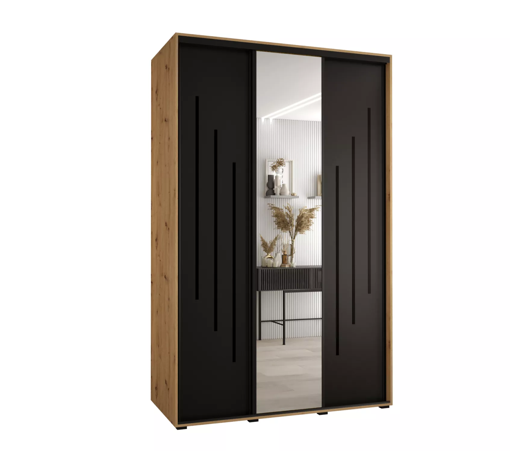 Šatní skříň YVONA 9 - 160/60 cm, dub artisan / černá / černá