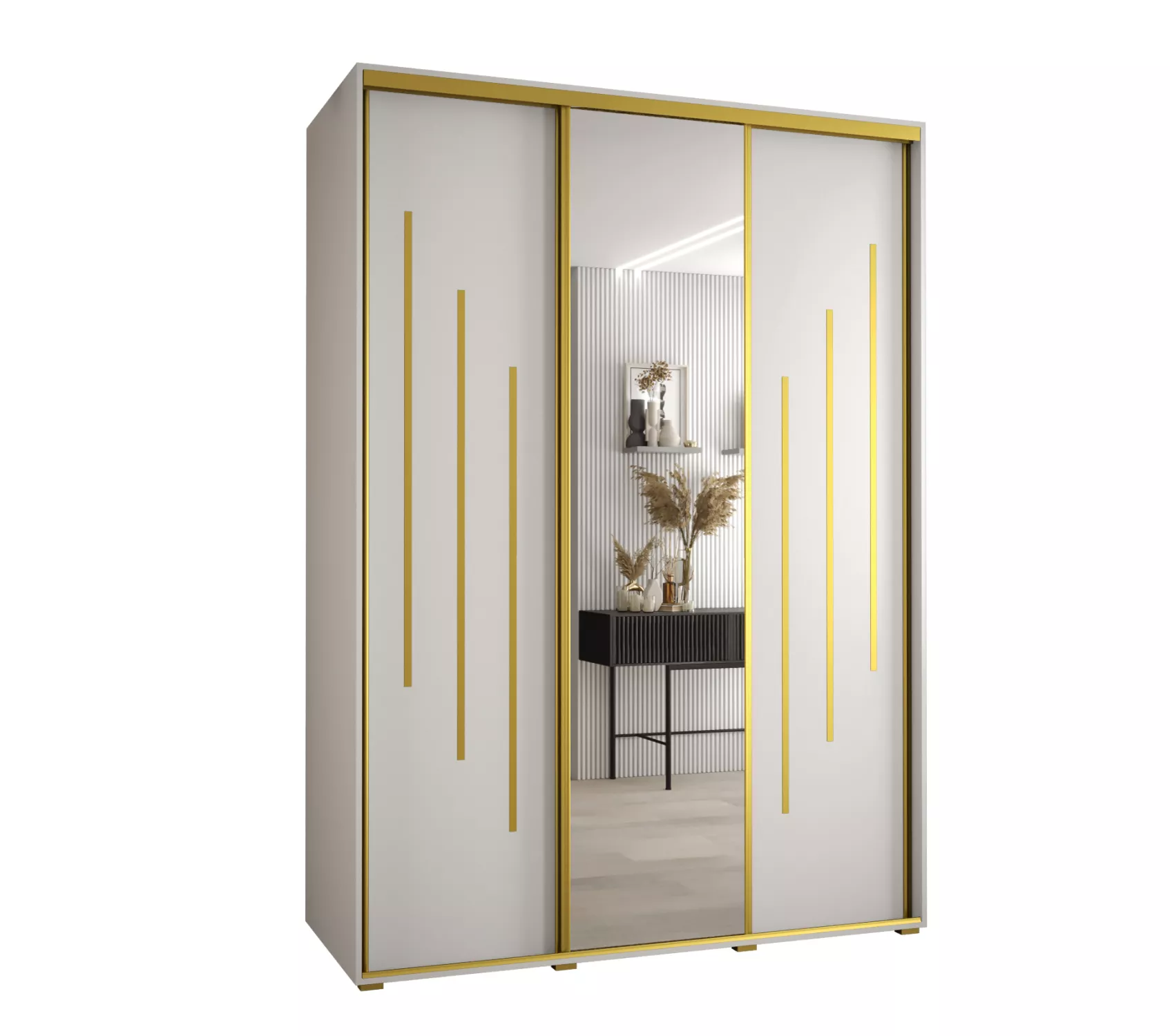 Šatní skříň YVONA 9 - 170/60 cm, bílá / zlatá