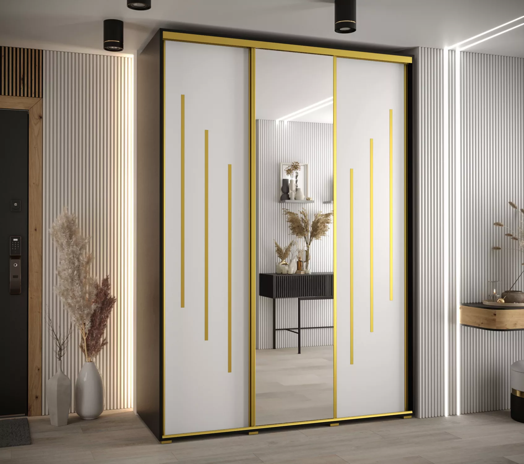 Šatní skříň YVONA 9 - 170/60 cm, černá / bílá / zlatá