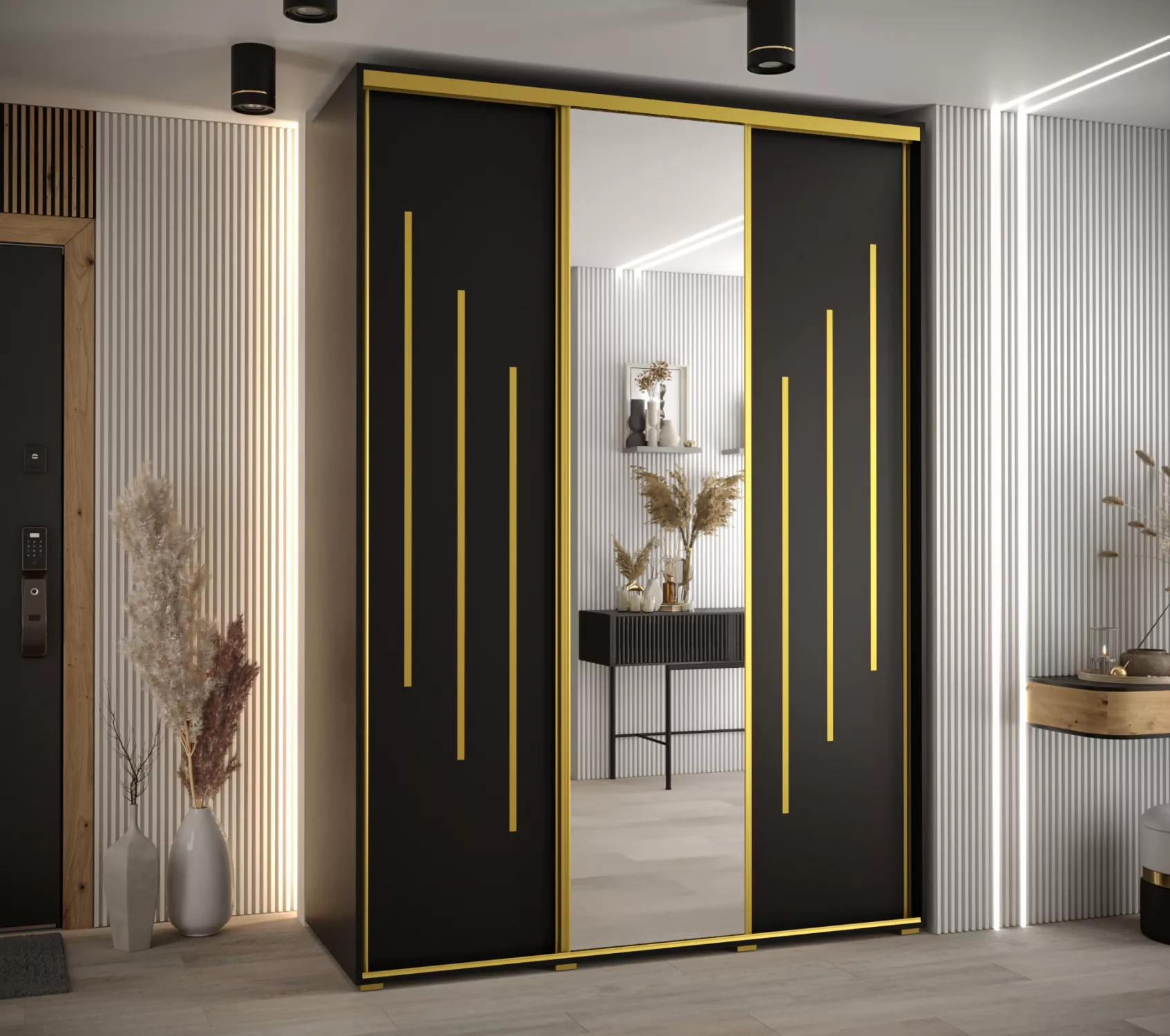 Šatní skříň YVONA 9 - 170/60 cm, černá / zlatá