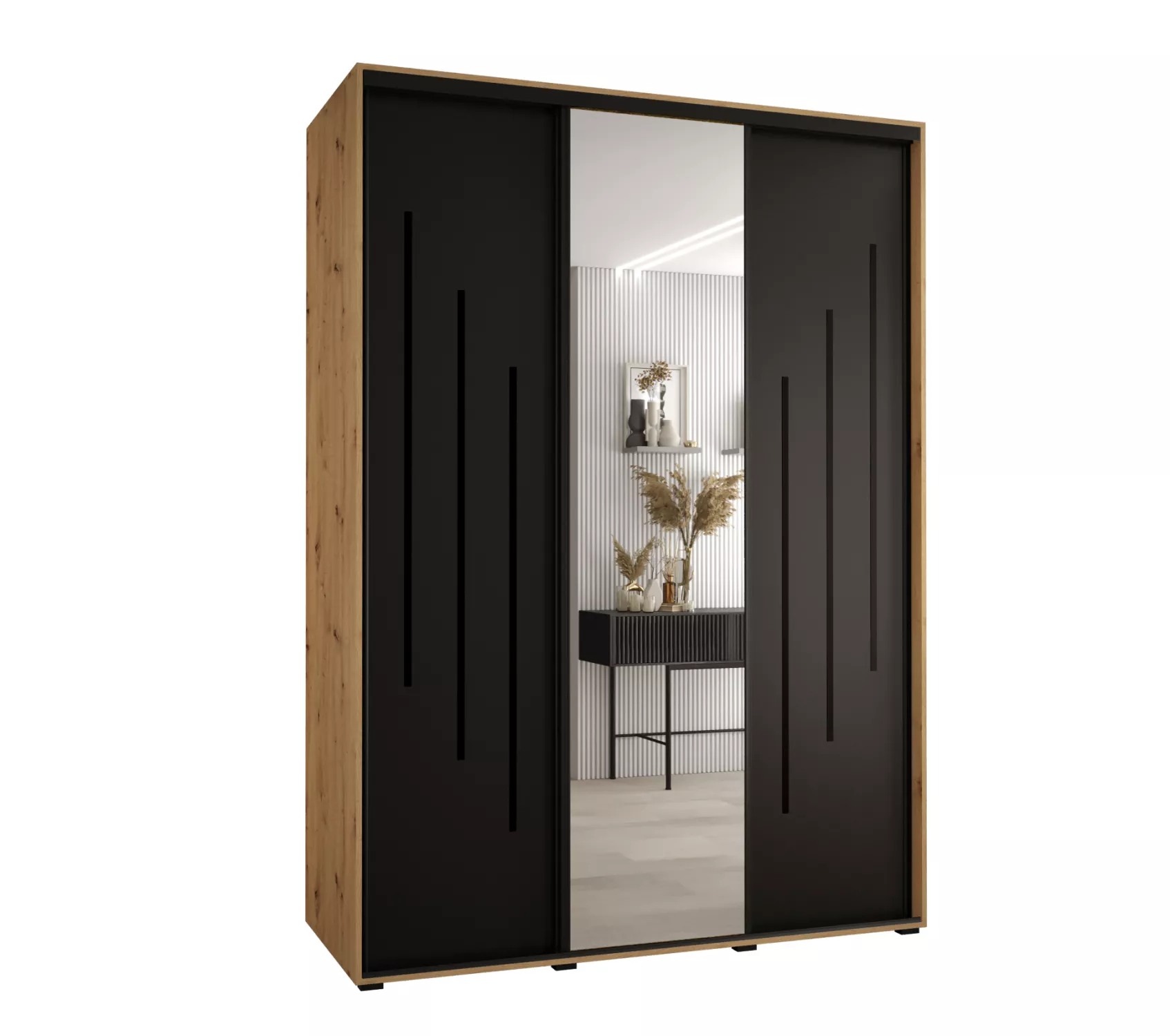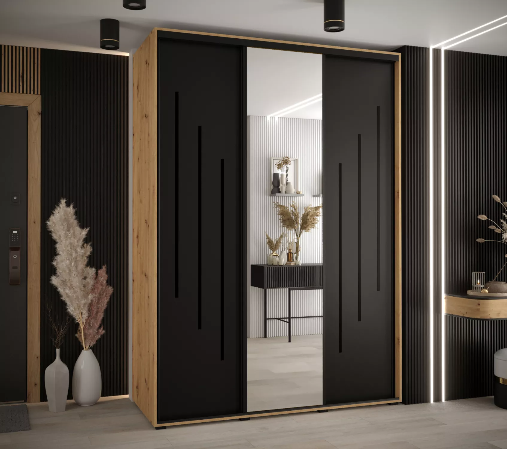 Šatní skříň YVONA 9 - 170/60 cm, dub artisan / černá / černá