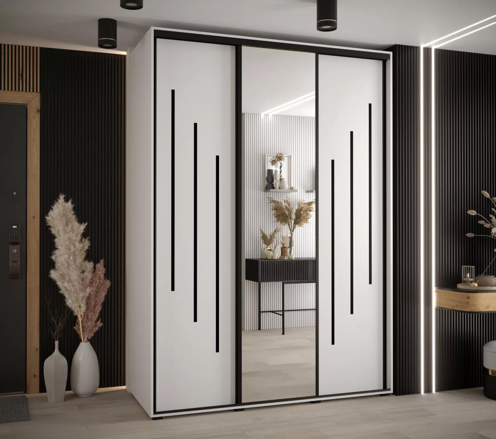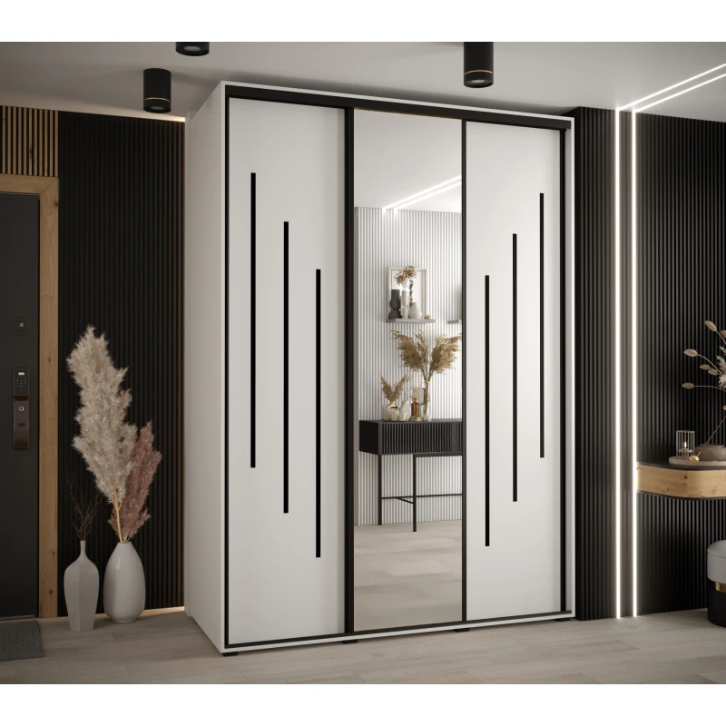 Šatní skříň YVONA 9 - 180/60 cm, bílá / černá